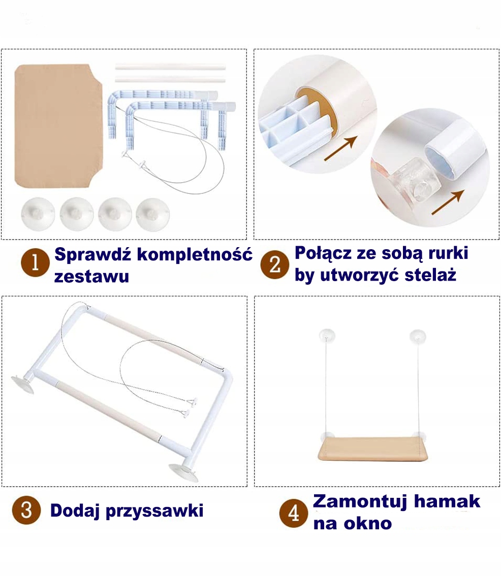 Бежевий котячий гамак для віконних присосок. Ліжко. Міцне підвіконня