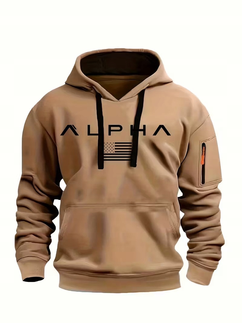 БЕЖЕВАЯ ТОЛСТОВКА-КЕНГУРУ С КАПЮШОНОМ ALPHA US ARMY XL