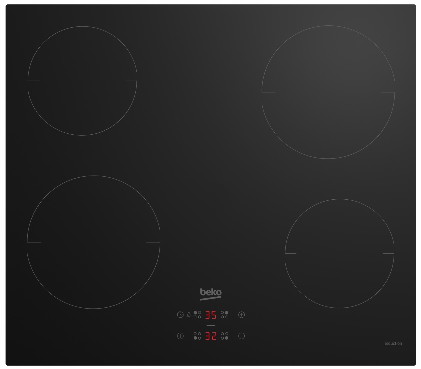 Индукционная варочная панель Beko, черная, ширина 60 см, 9 уровней приготовления.