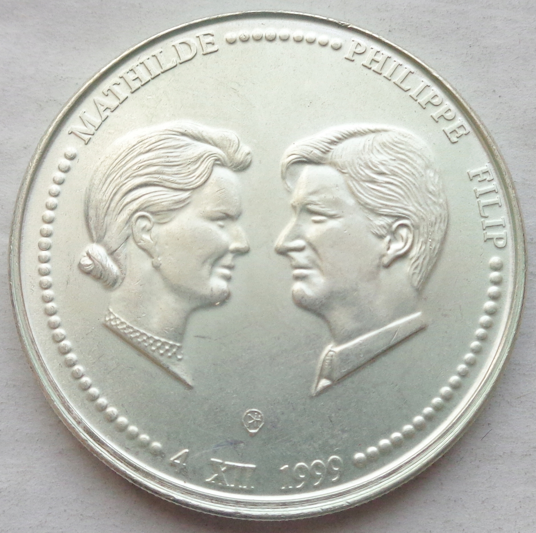 Belgia - 250 franków - 1999 - małżeństwo Philippe'a i Mathilde - srebro