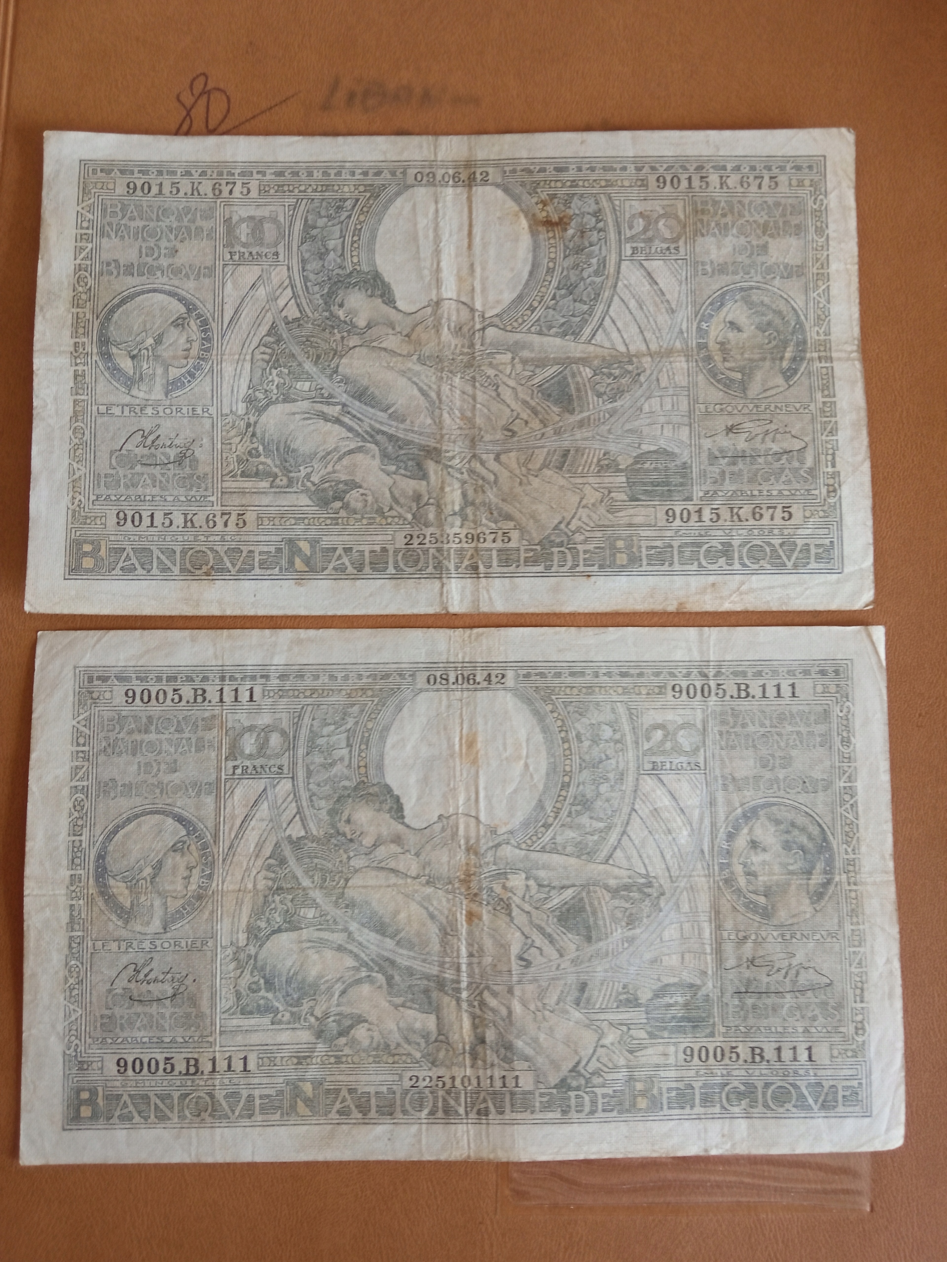 Belgia 100 Franków 1942r 8 i 9 czerwca 2 sztuki