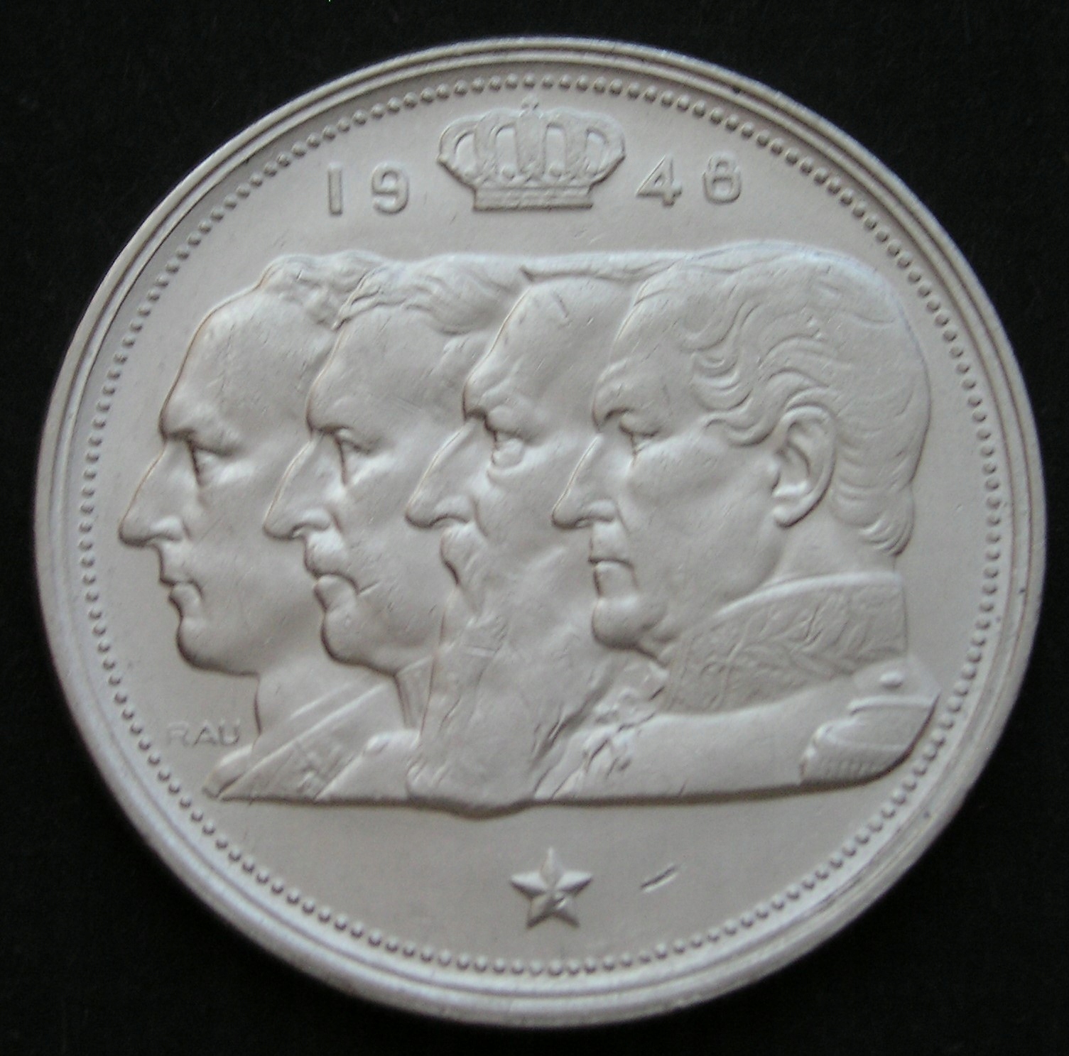 Belgia 100 franków 1948 - czterej królowie - dynastia - srebro