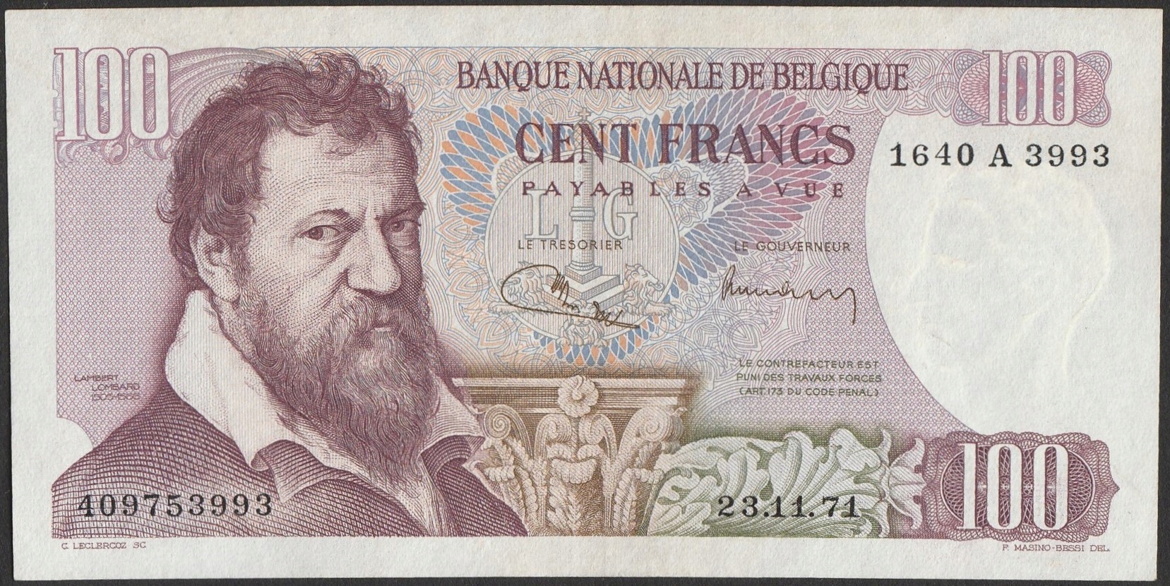 Belgia 100 franków 1971 - Lambert Lombard - stan bankowy UNC -