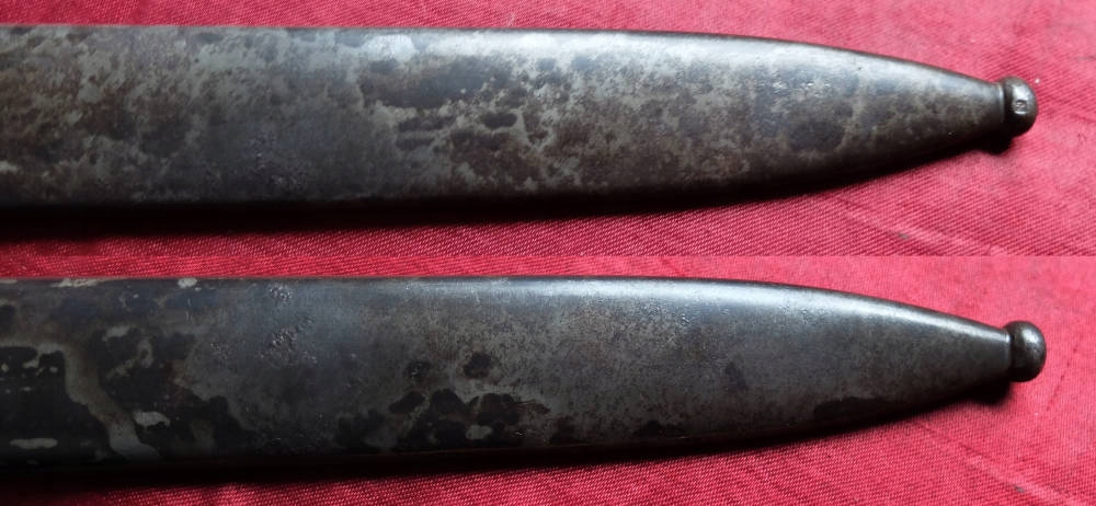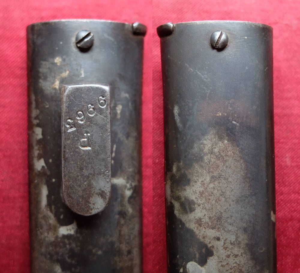 Ножны не имеют отверстий и не мнутся. Вагинальный проводник функционален, а штык хорошо входит во влагалище. Маркировка P 9963 на крючке.