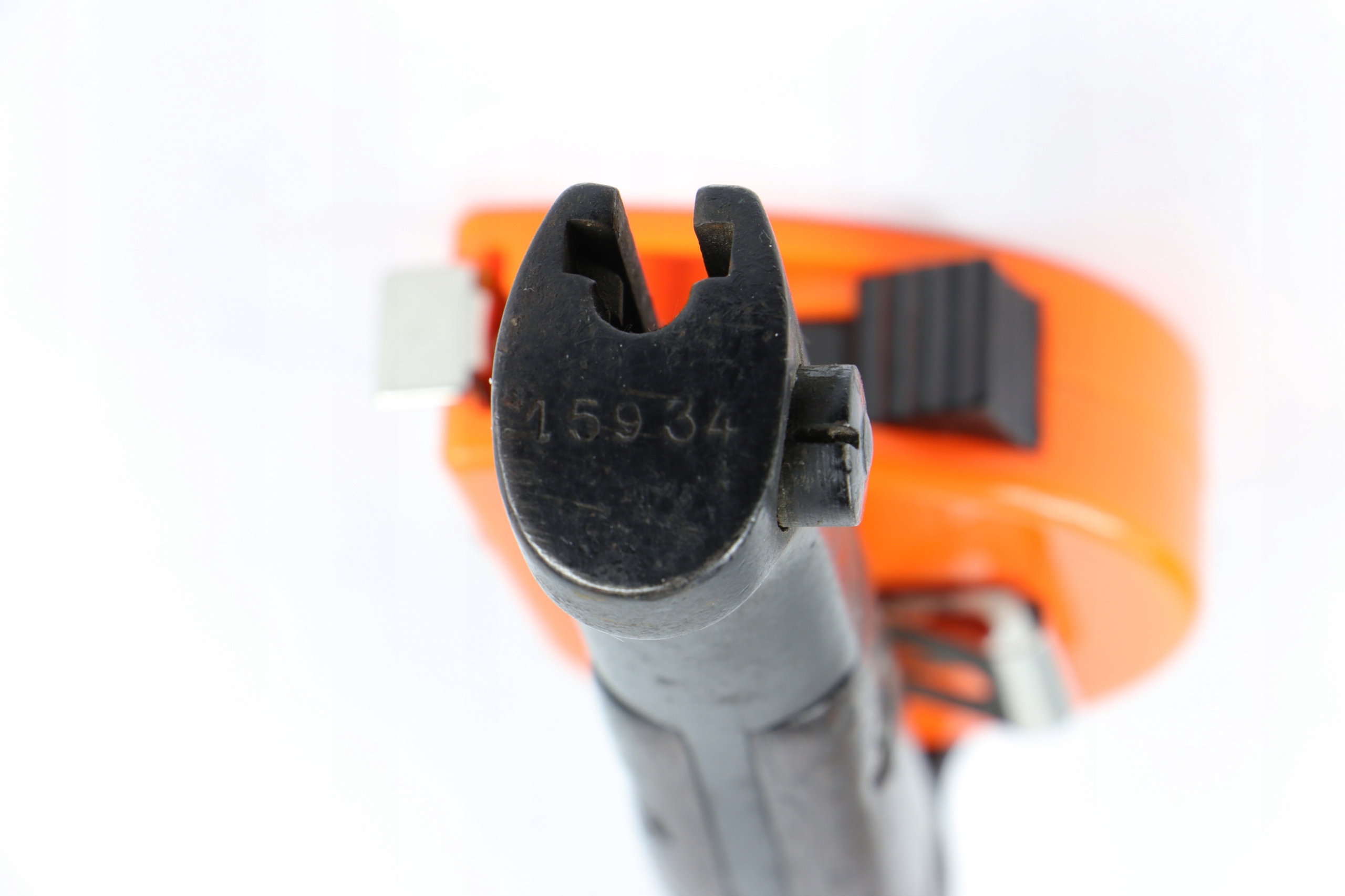 Как видно на фотографиях, штык не чистился и находится в хорошем состоянии. Клинок незаточенный, замок работает.