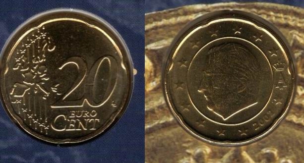 БЕЛЬГИЯ 2002 ГОДА 20 ЕВРО ЦЕНТ ИЗ НАБОРА