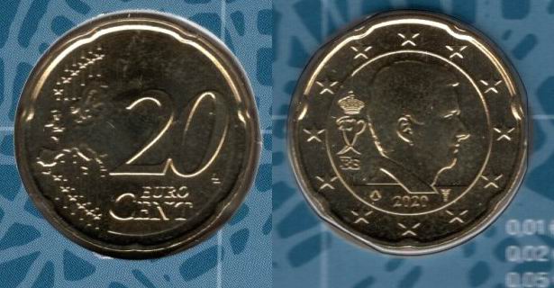 БЕЛЬГИЯ 2020 20 ЕВРО ЦЕНТ ИЗ НАБОРА