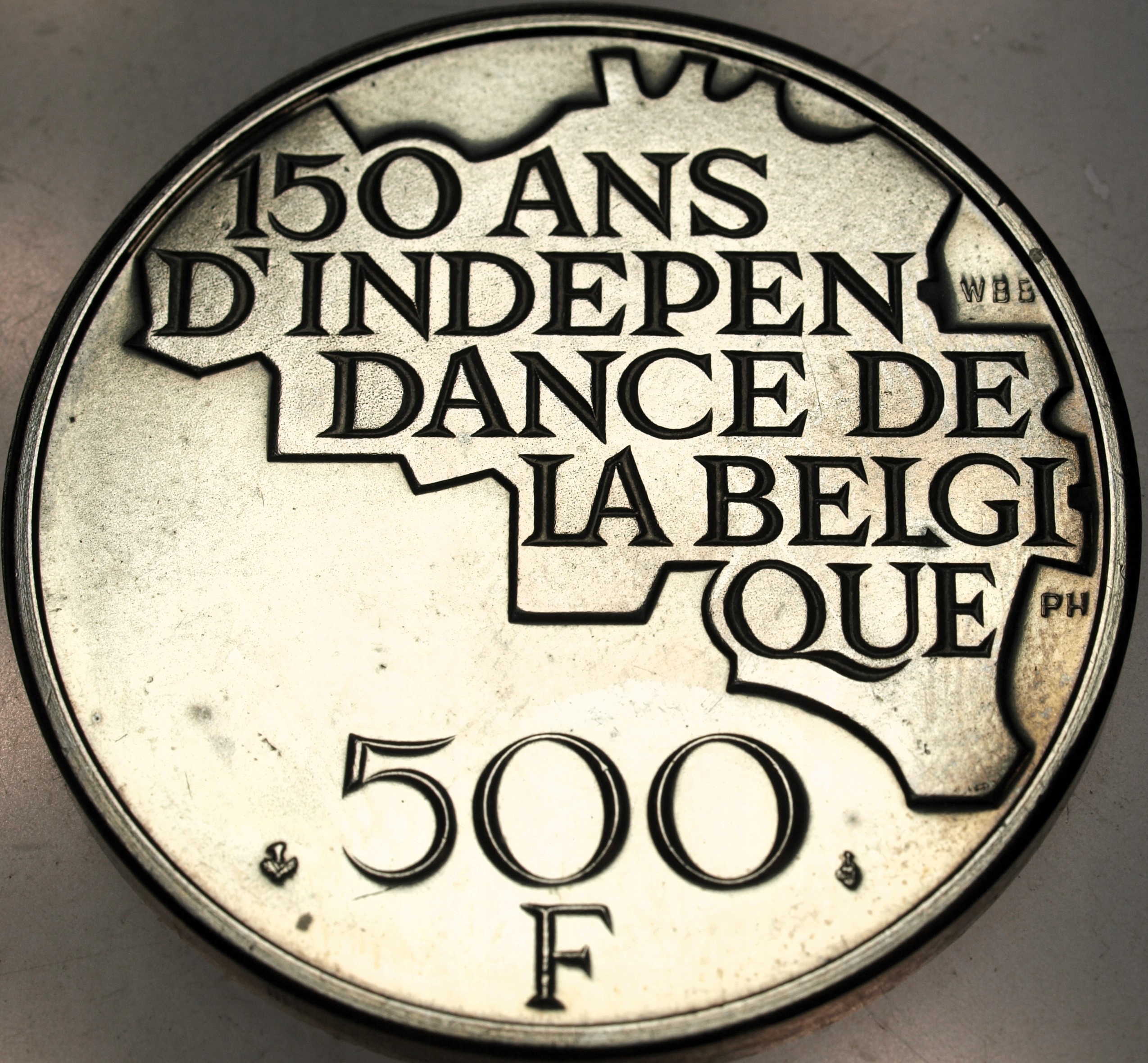Бельгия 500 Franks 1980 Юбилей 150 лет серебро