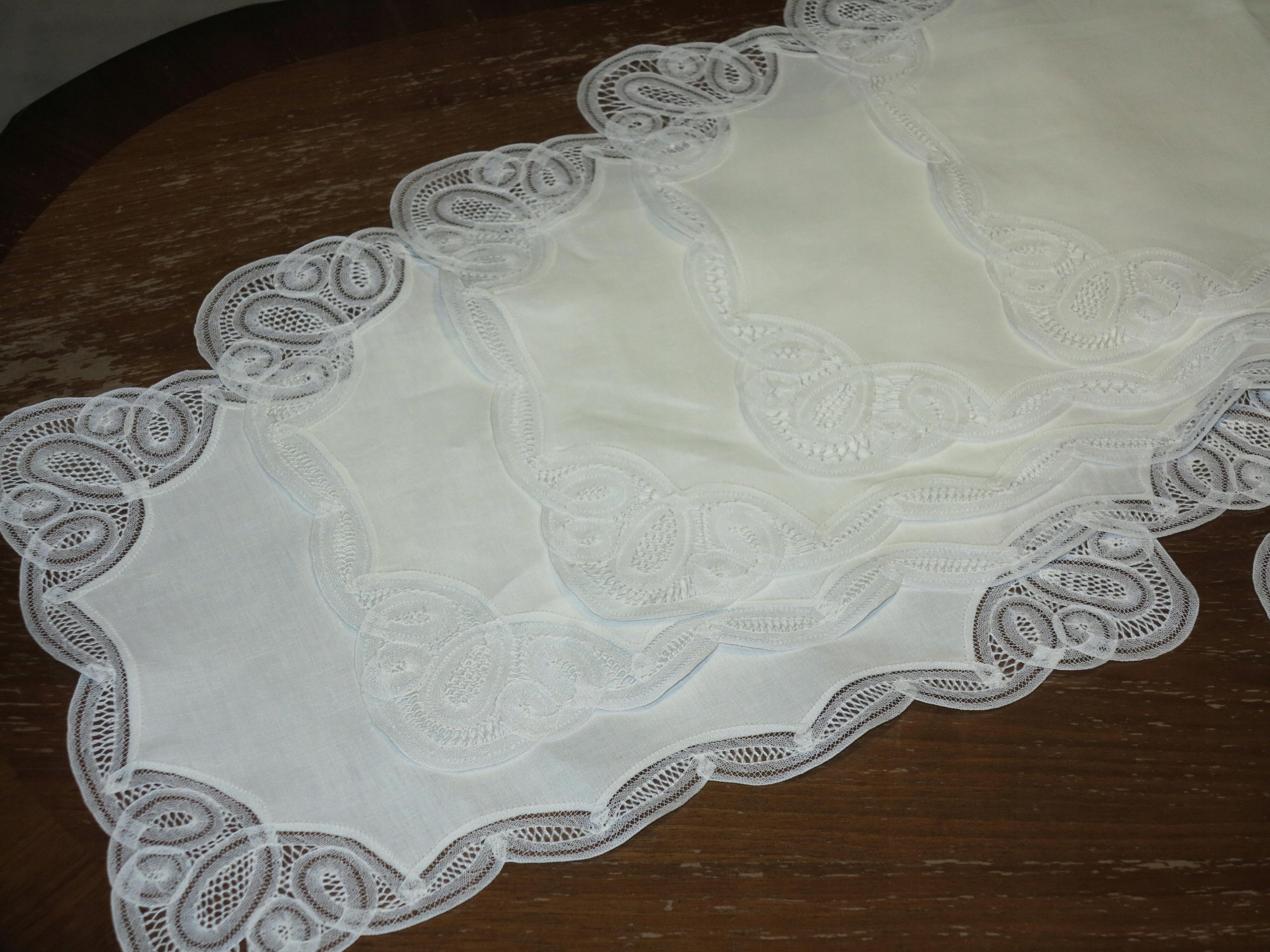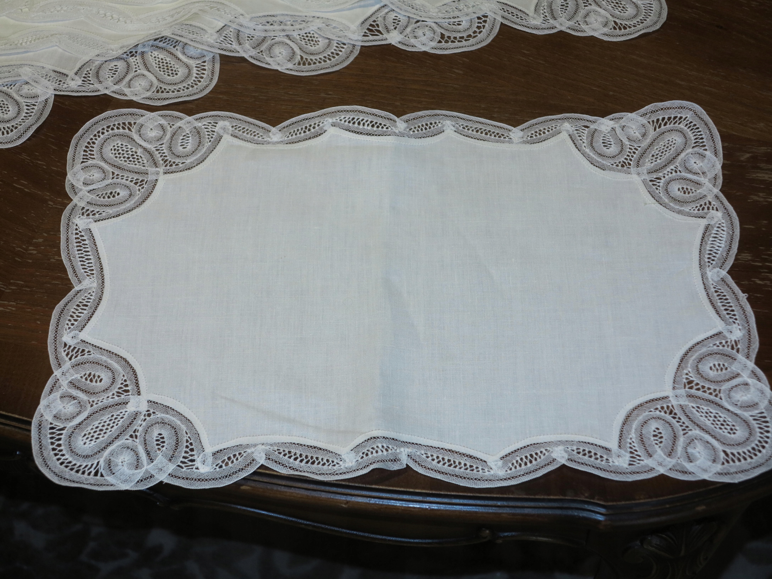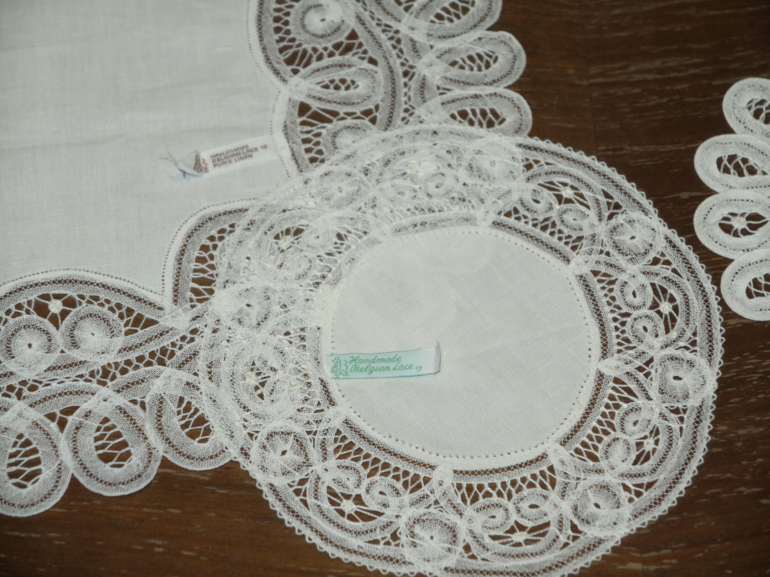 БЕЛЬГИЯ РУЧНАЯ РАБОТА-ЧИСТОЕ ЛЬНО- НАБОР БЕЛЫХ СЕРВИК РУЧНОЙ РАБОТЫ-6 ПРЕДМЕТОВ №1