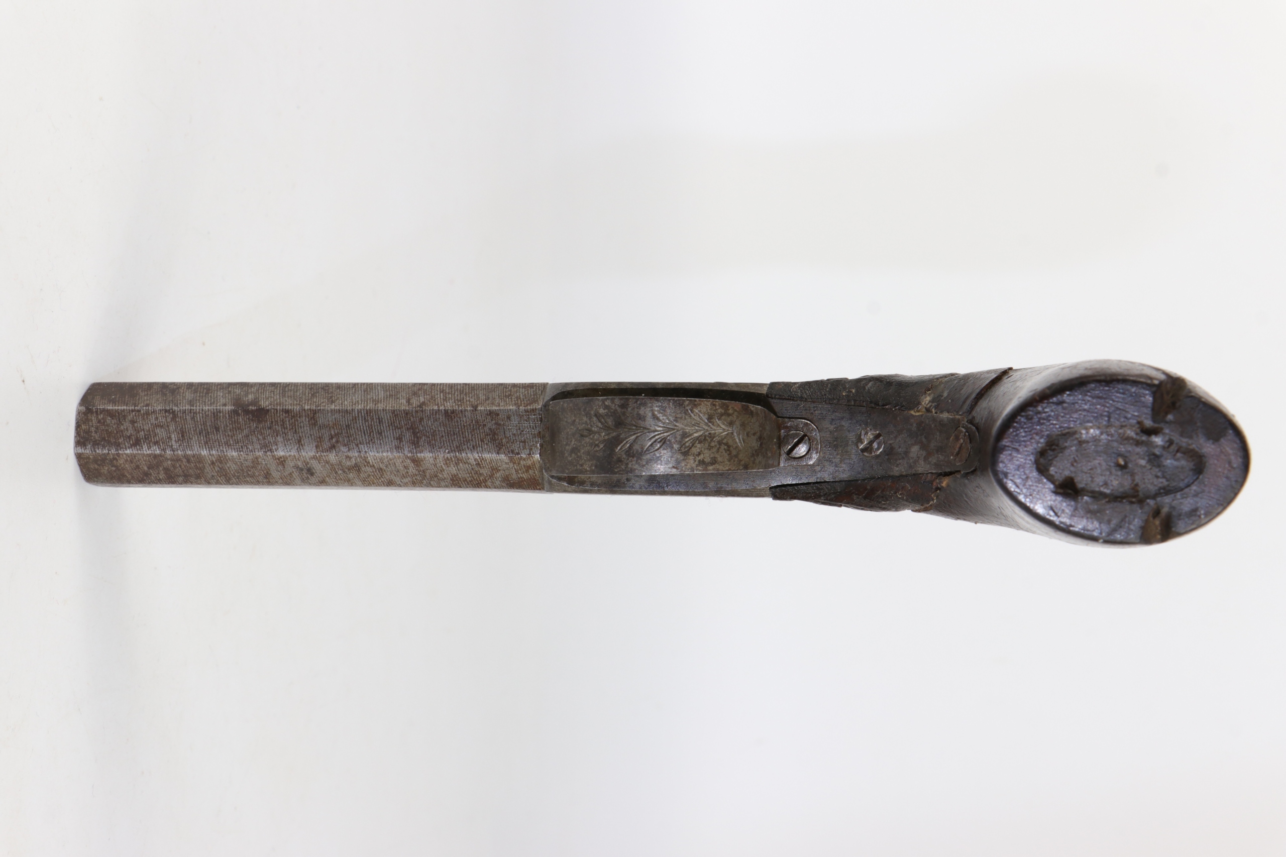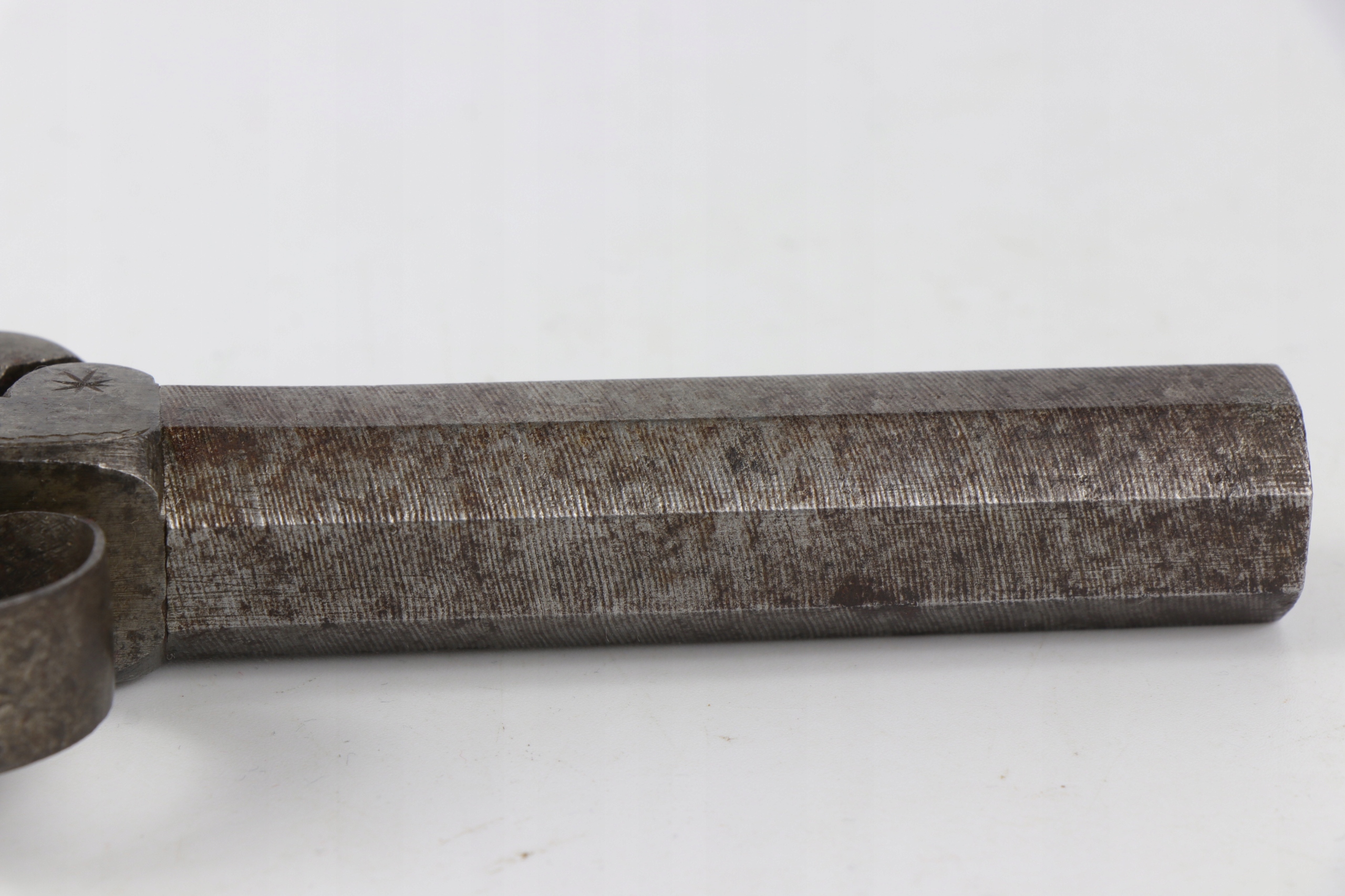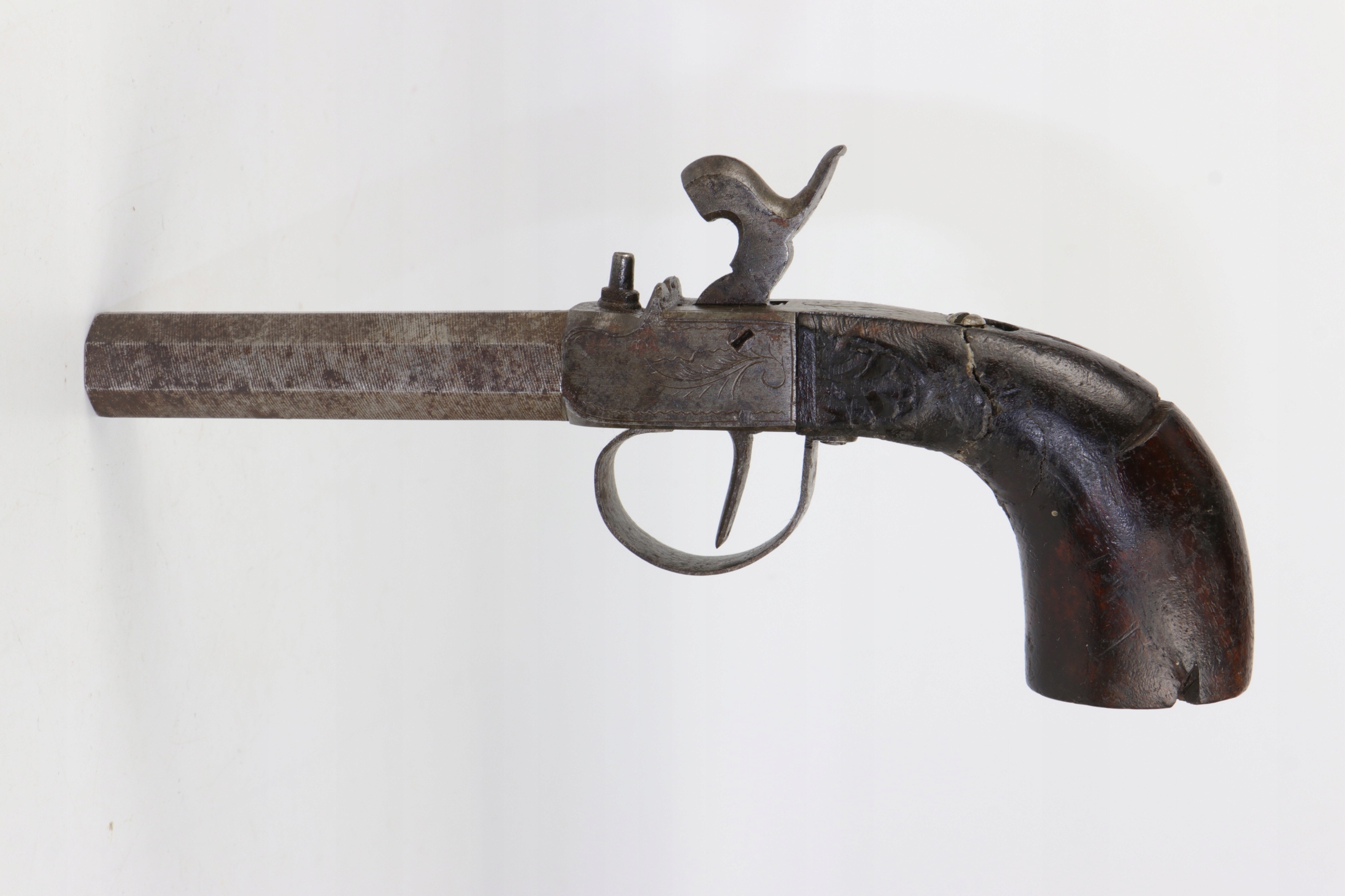 Пистолет с черным и порошковым пистолетом. Пистолет, украшенный очень хорошей гравировкой, восьмиугольной бочкой с характерным фризом. Эффективный замок. > Материал : stal