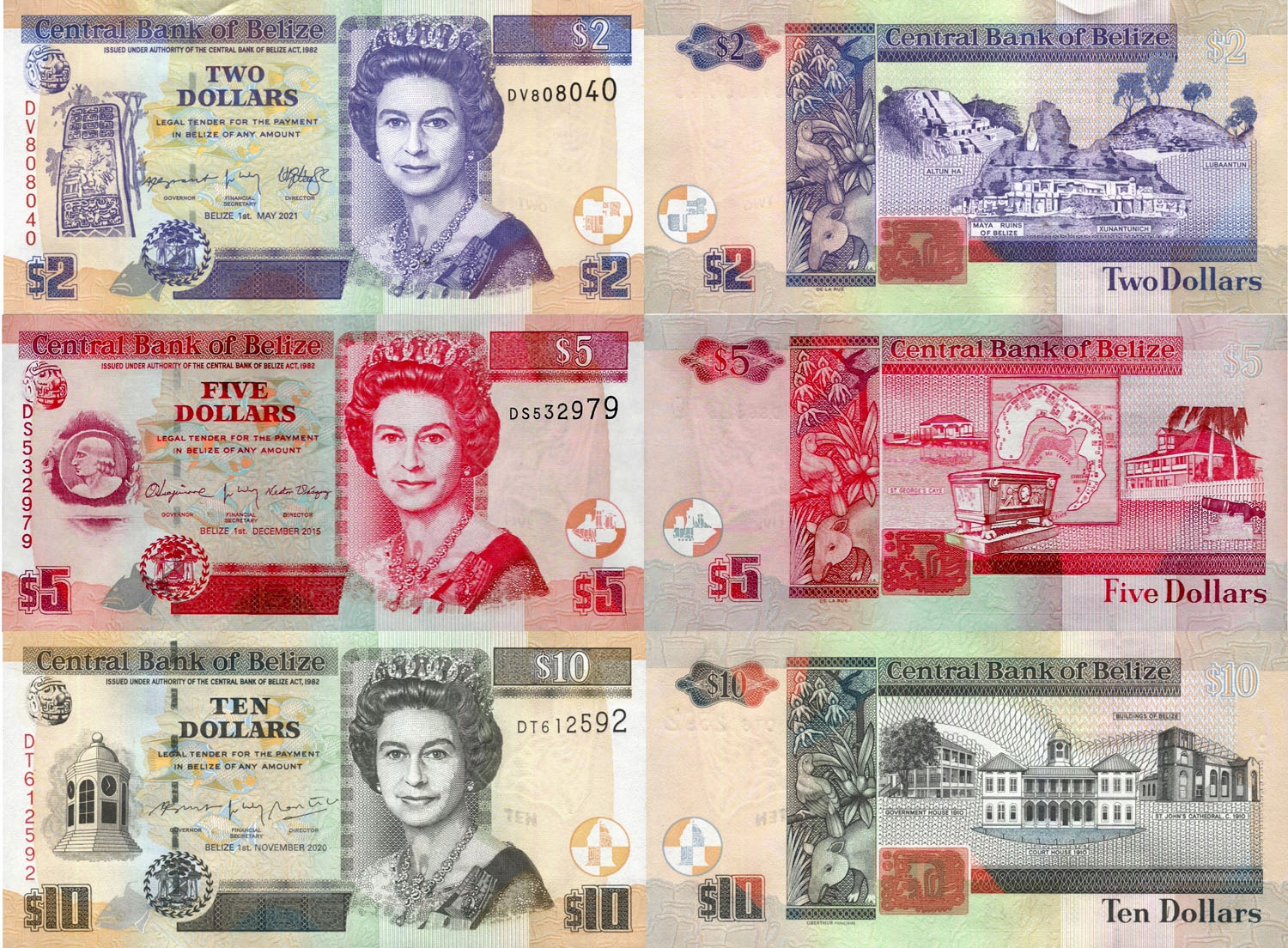 Belize Set 3 PCS 2+5+10 долларов - выберите 66-68 UNC случайные годы