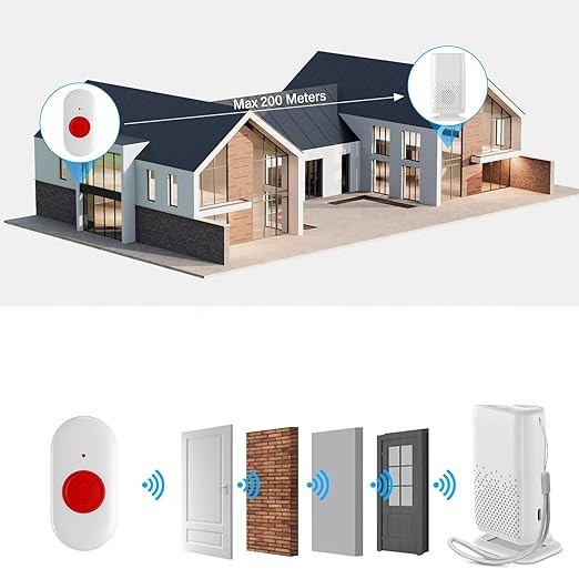 Кнопка беспроводной связи работает на впечатляющем расстоянии 40 -метров, благодаря которой ее можно использовать как дома, так и в более крупных пространствах, а также в большем пространстве. Это идеальное решение, которое обеспечивает контакт с опекуном в любой ситуации.
