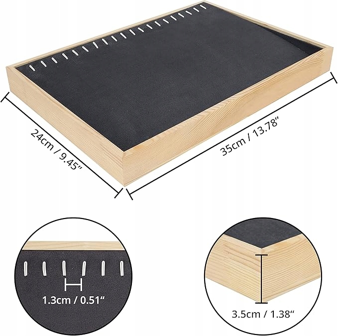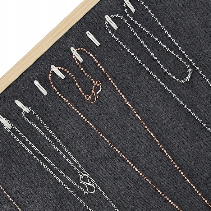 - Высокое качество: в нашем случае для ожерелий имеет 20 крючков и может вместить 20 ожерелий/браслетов. Интерьер корпуса покрыт мягким серо -бархатом, который не разорвет и не обрисовывает ваши ценные украшения. Внешняя часть подноса сделана из прочной сосновой древесины и без заусенцев, что означает, что жилье будет длиться долго и будет вписаться в внутреннюю часть любой комнаты в доме. У подноса есть склон, который лучше всего покажет ваши украшения.