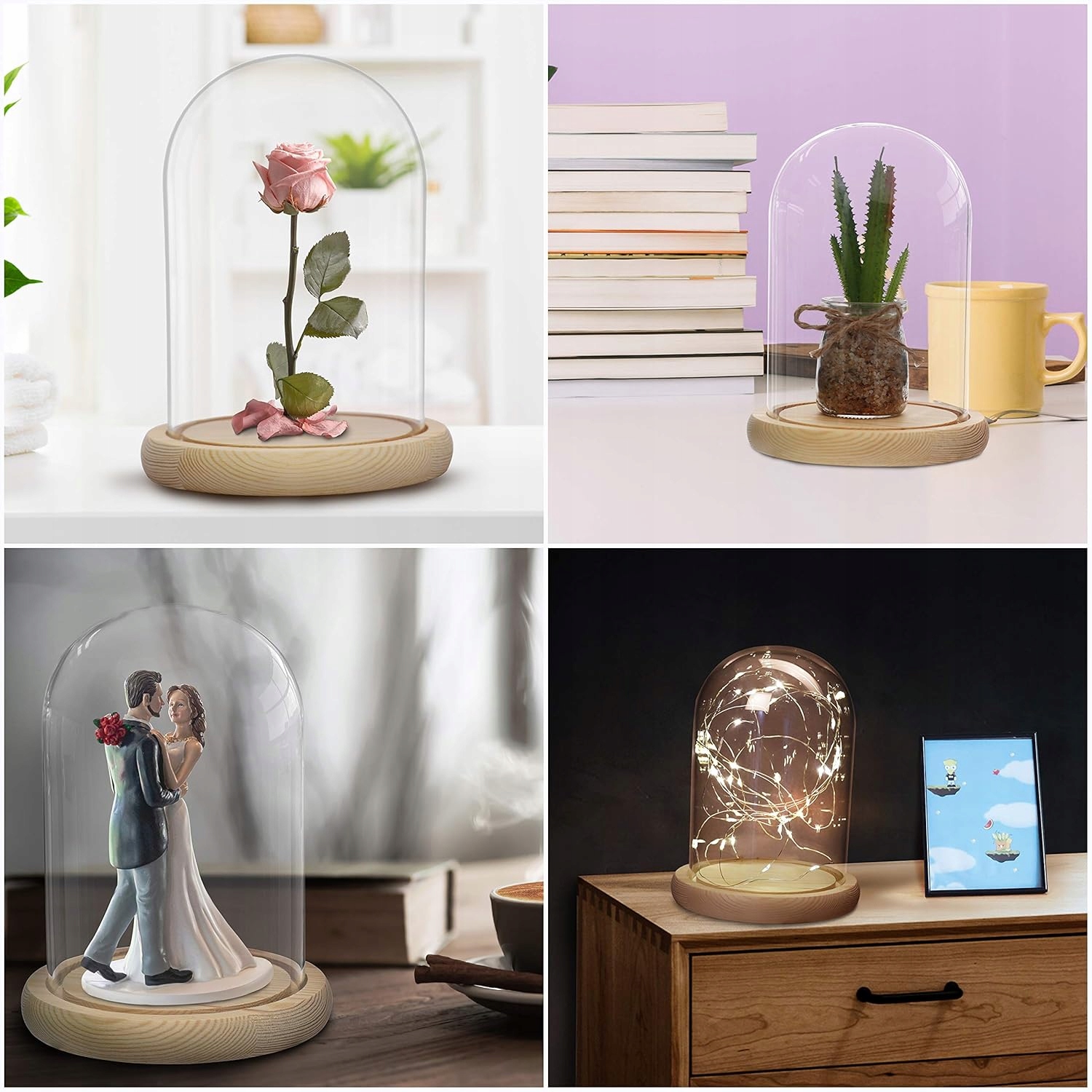 Belle Vous szklany klosz 20 cm z drewnianą podstawą do ozdób i antyków