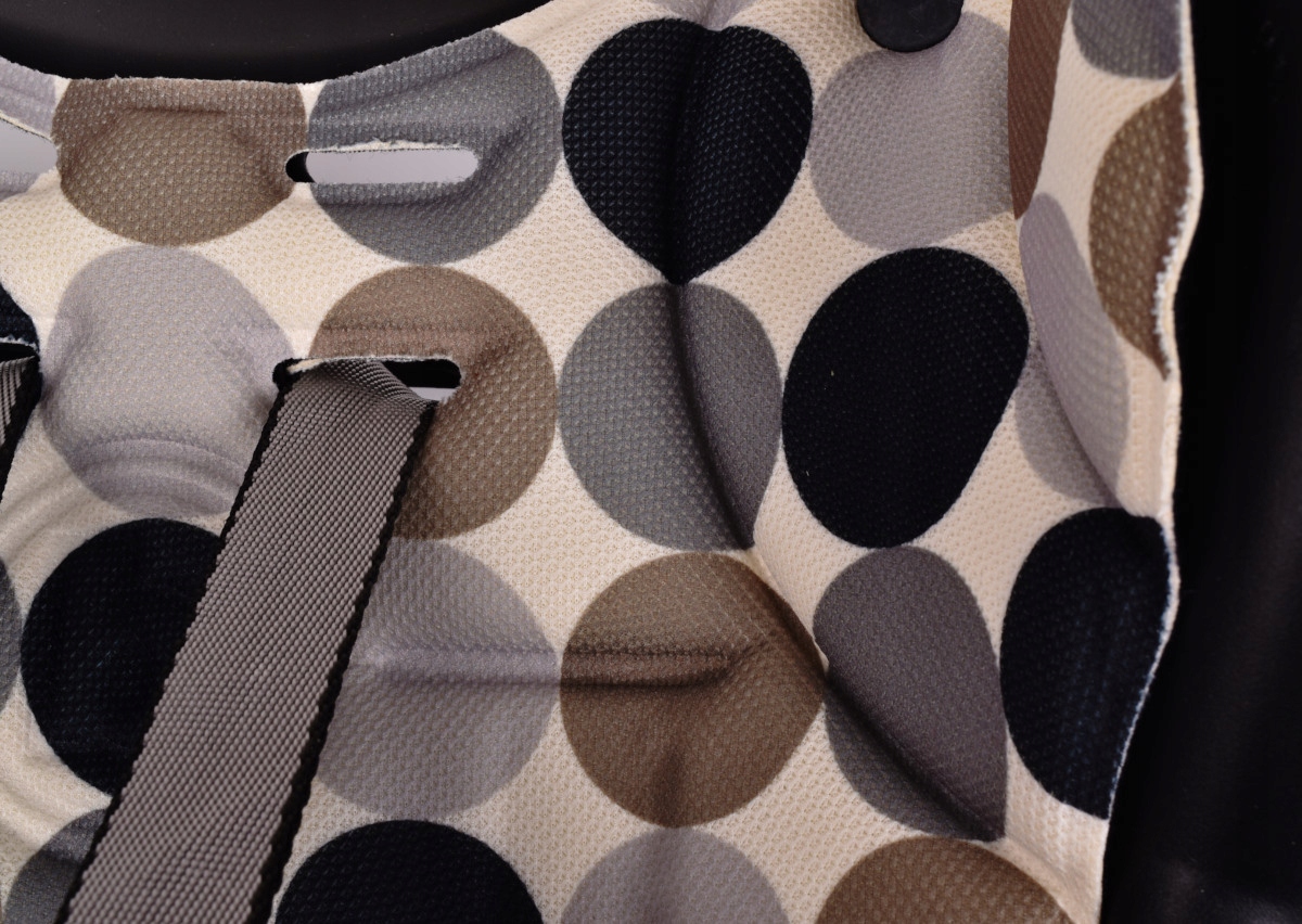 >- гипоаллергенная, мягкая двухсекционная обивка, застегивающаяся на кнопки, обеспечивает малышу комфорт во время вождения, а в случае загрязнения ее можно легко снять и постирать