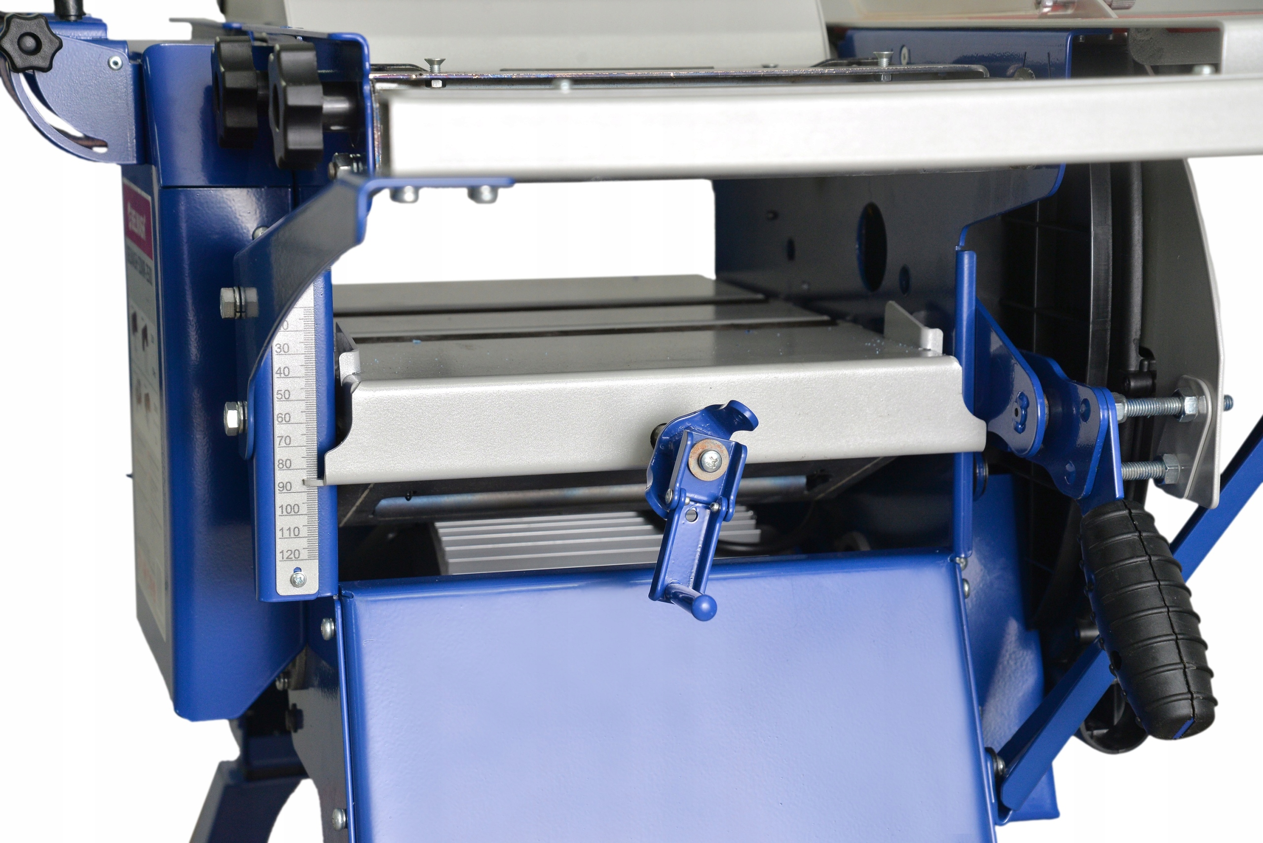 - Машина оснащена однофазным асинхронным двигателем со встроенной защитой от перегрузки, стальным строгальным валом с тремя ножами и аварийной остановкой. включить вращающуюся опору.