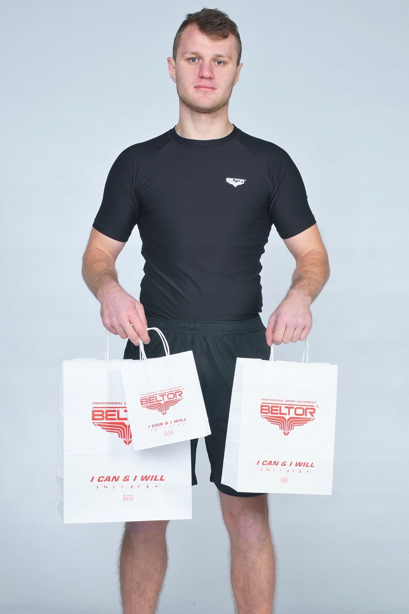 Дизайнерская сумка для покупок из бумаги. Он также идеально подходит в качестве ПОДАРОЧНОГО КОРЗИНА для соревнований, турниров и подарков. Ручки в виде завязок обеспечивают отличную долговечность сумки! Сумка выполнена в фирменных цветах Beltor – белом и красном. Слоган I Can I Will также придает сумкам спортивный характер и подчеркивает эстетику.
