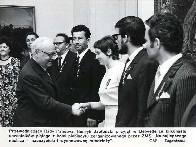 - Заголовок: «Председатель Государственного совета Генрих Яблоньский принял во дворце Бельведер нескольких участников пятого плебисцита, организованного ЗМС «За лучшее» магистр - педагог и воспитатель молодежи". CAF - Загодзиньский"