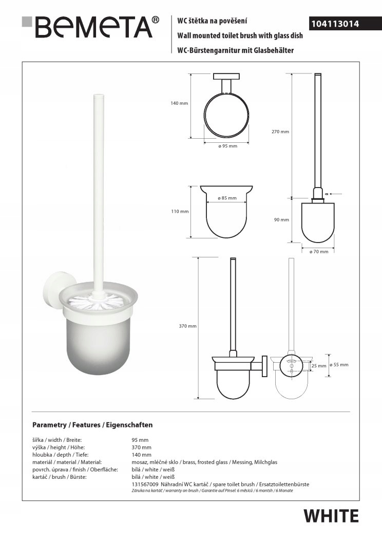 Оплачивая «Bemeta WHITE Щітка для туалету з білою щетиною 104113014», вы можете быть уверены, что данный товар из каталога «Туалетные щетки» будет доставлен из Польши и проверен на целостность. В цене товара, указанной на сайте, учтена доставка из Польши. Внимание!!! Товары для Евросоюза, согласно законодательству стран Евросоюза, могут отличаться упаковкой или наполнением.