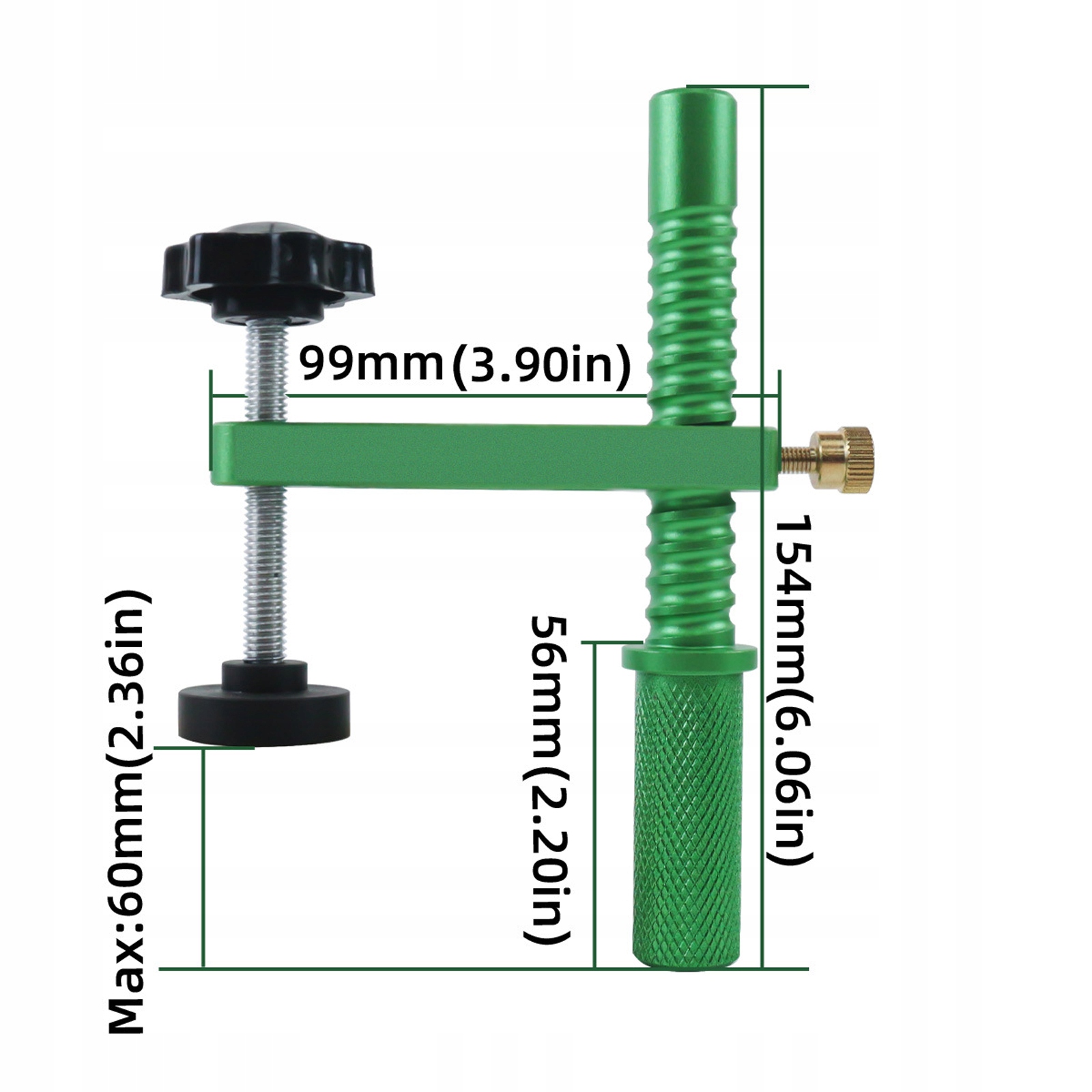 2. Регулируемый диапазон зажима: приспособление имеет гладкую пластиковую деталь, которая надежно удерживает древесину, защищая ее поверхность от повреждений. Благодаря регулируемому диапазону зажимов можно легко обрабатывать древесину различной толщины до 60 мм. Конструкция регулировки винта делает его удобным и простым в эксплуатации.