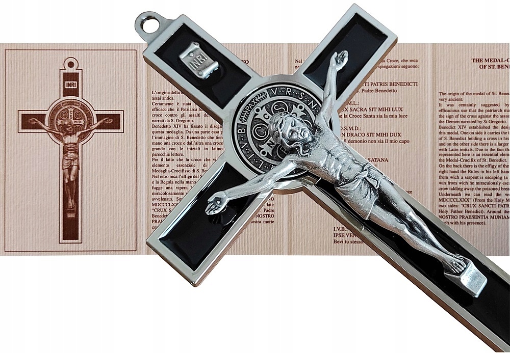 Красиво изготовленный металлический бенедиктинский серебряный крест с черной начинкой - итальянский продукт - высокое качество !!! h1>