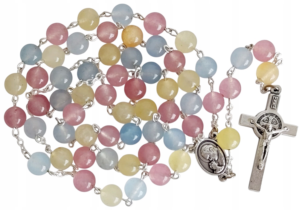 КРАСИВЫЕ ЧЕТКИ ИЗ НАТУРАЛЬНОГО КАМНЯ - МОРГАНИТА С СВ. БЕНЕДИКТ.
