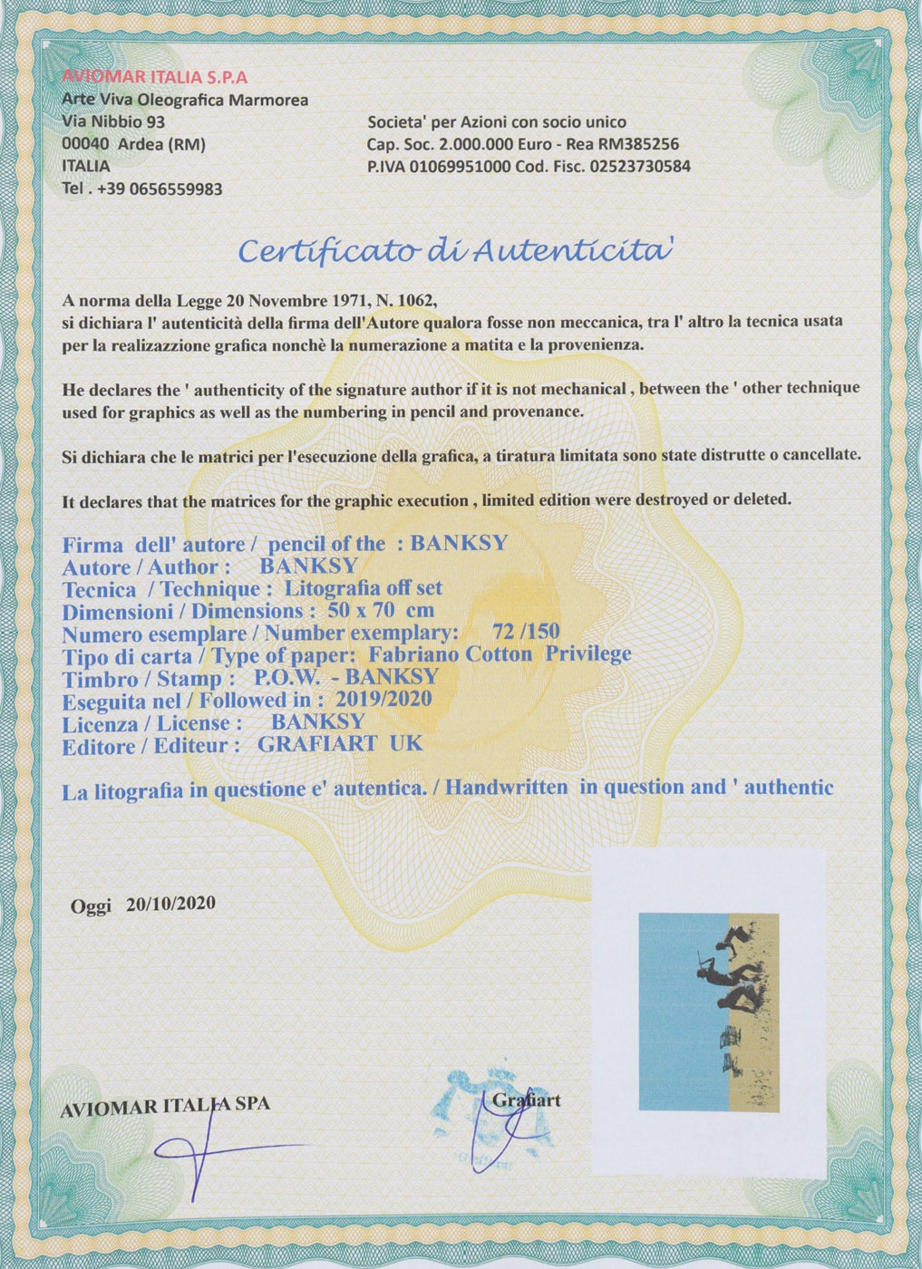 Автор: Бэнкси (настоящие имя и фамилия по данным газеты «The Guardian»: Роберт Бэнкс, по данным «The Mail on Sunday»: Робин Ганнингем, по другим источникам: Робин Бэнкси, родился в 1974 году в Йейте) — британский уличный художник искусство Его работы появляются на улицах Лондона и других мест по всему миру. Бэнкси использует различные приемы для передачи своих посланий, чаще всего юмористические или политические. Его оригинальная форма уличного искусства, сочетающая граффити и характерную трафаретную технику, а также смелое и зачастую очень рискованное размещение работ, получила признание художников и была замечена средствами массовой информации.