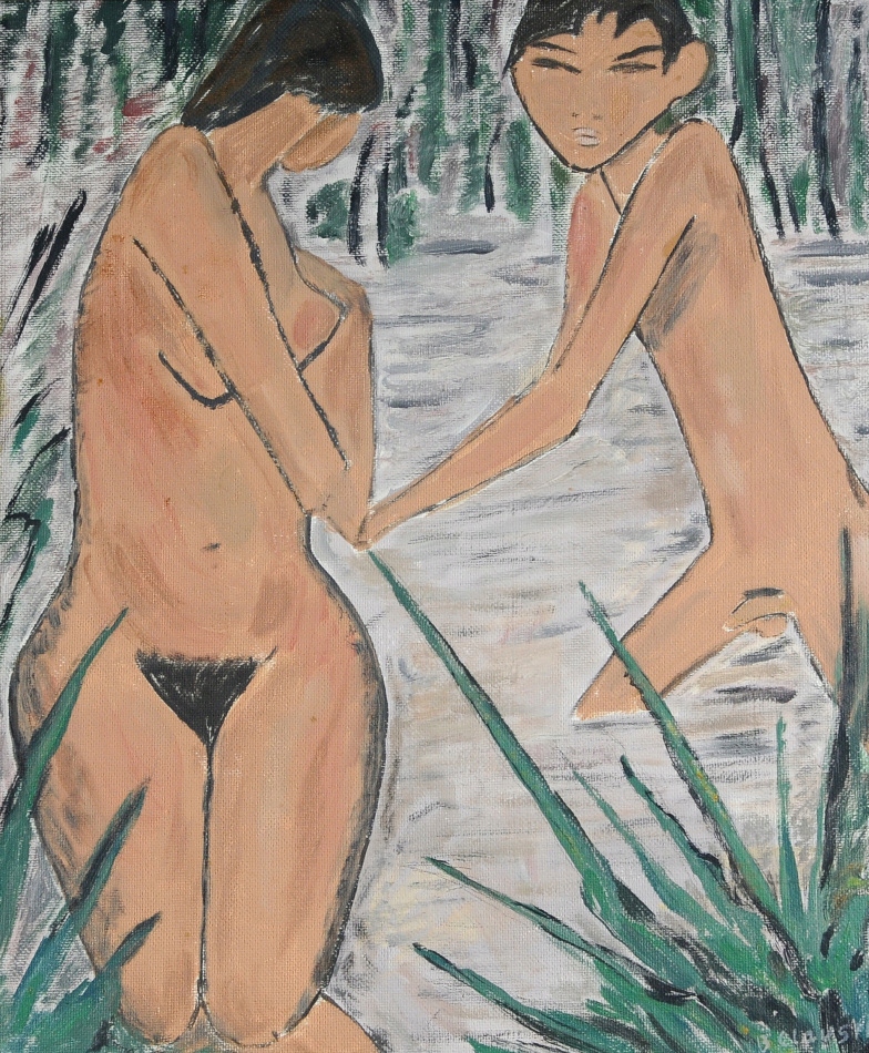 БЕНТ КЛАУСЕН "ВЬЕТНАМСКОЕ КУПАНИЕ" УНИКАЛЬНАЯ КАРТИНА МАСЛОМ!!!