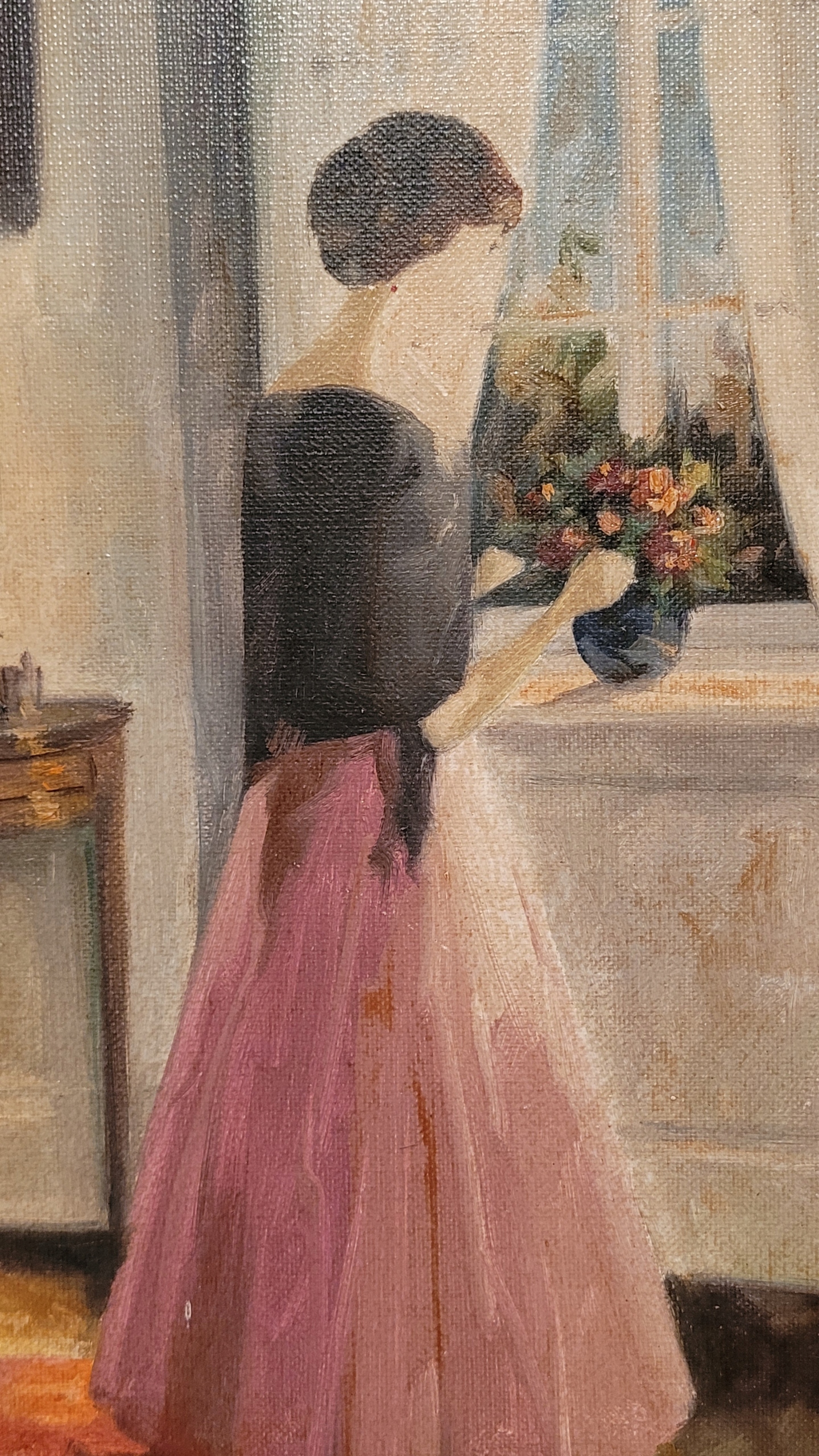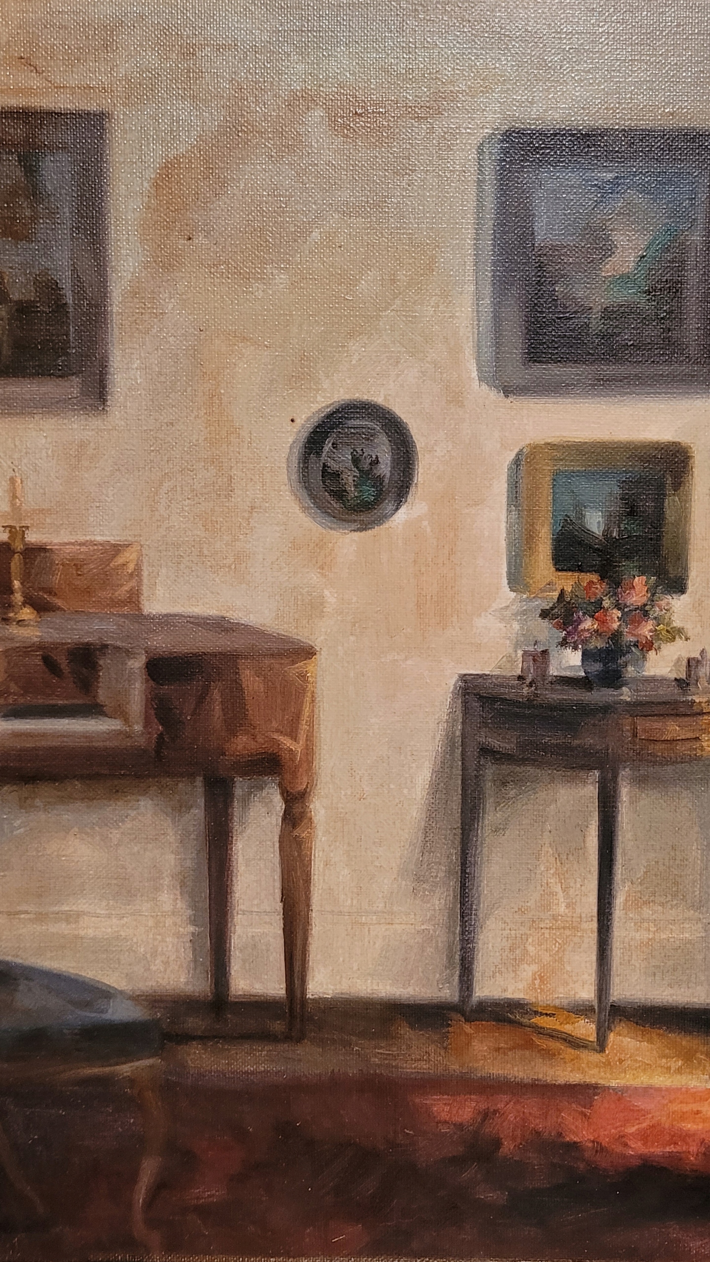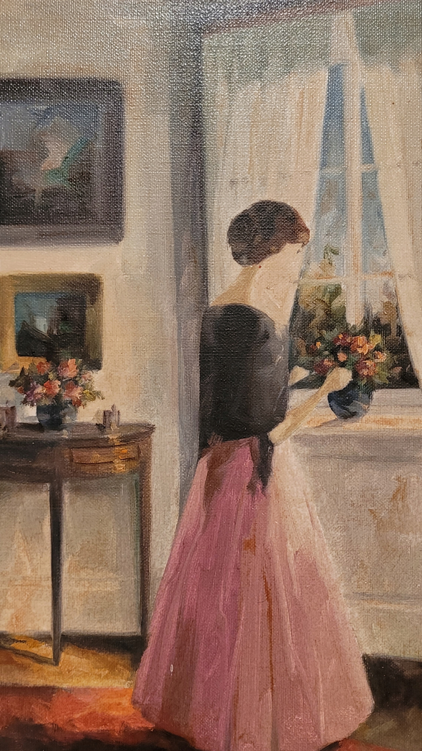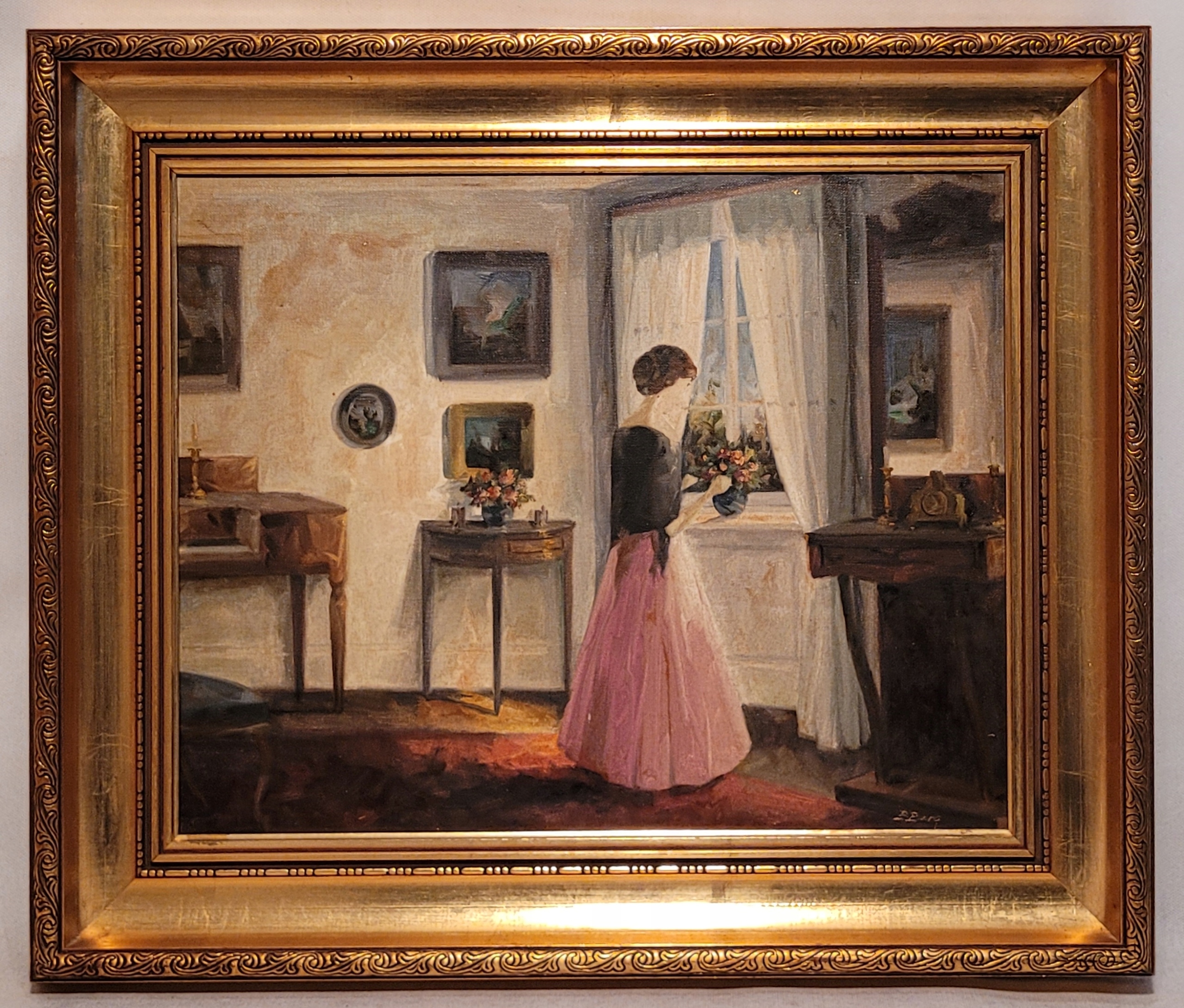 Бенте Берг (1931-) - «Женщина в салоне», красивая нефтяная картина.
