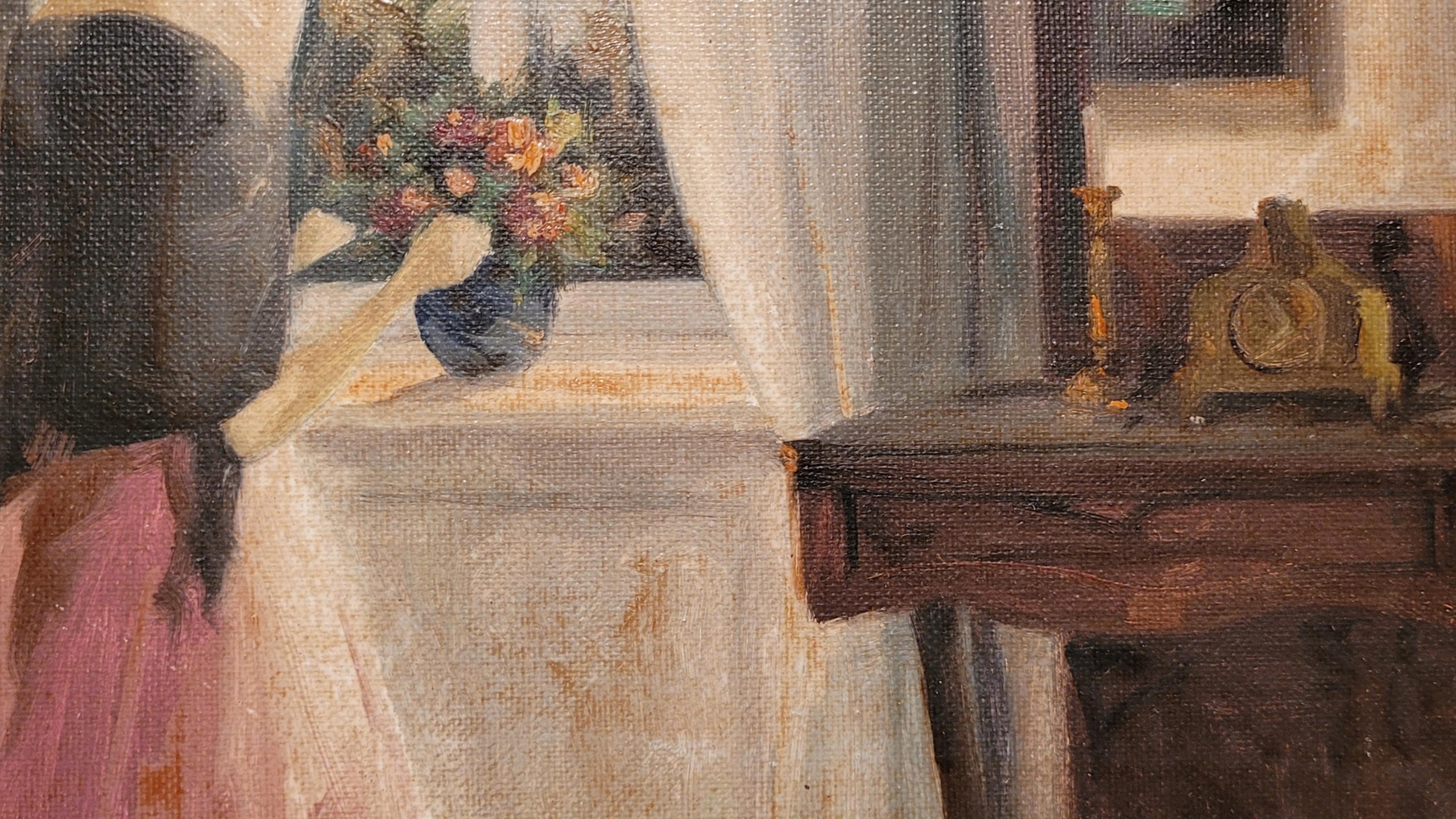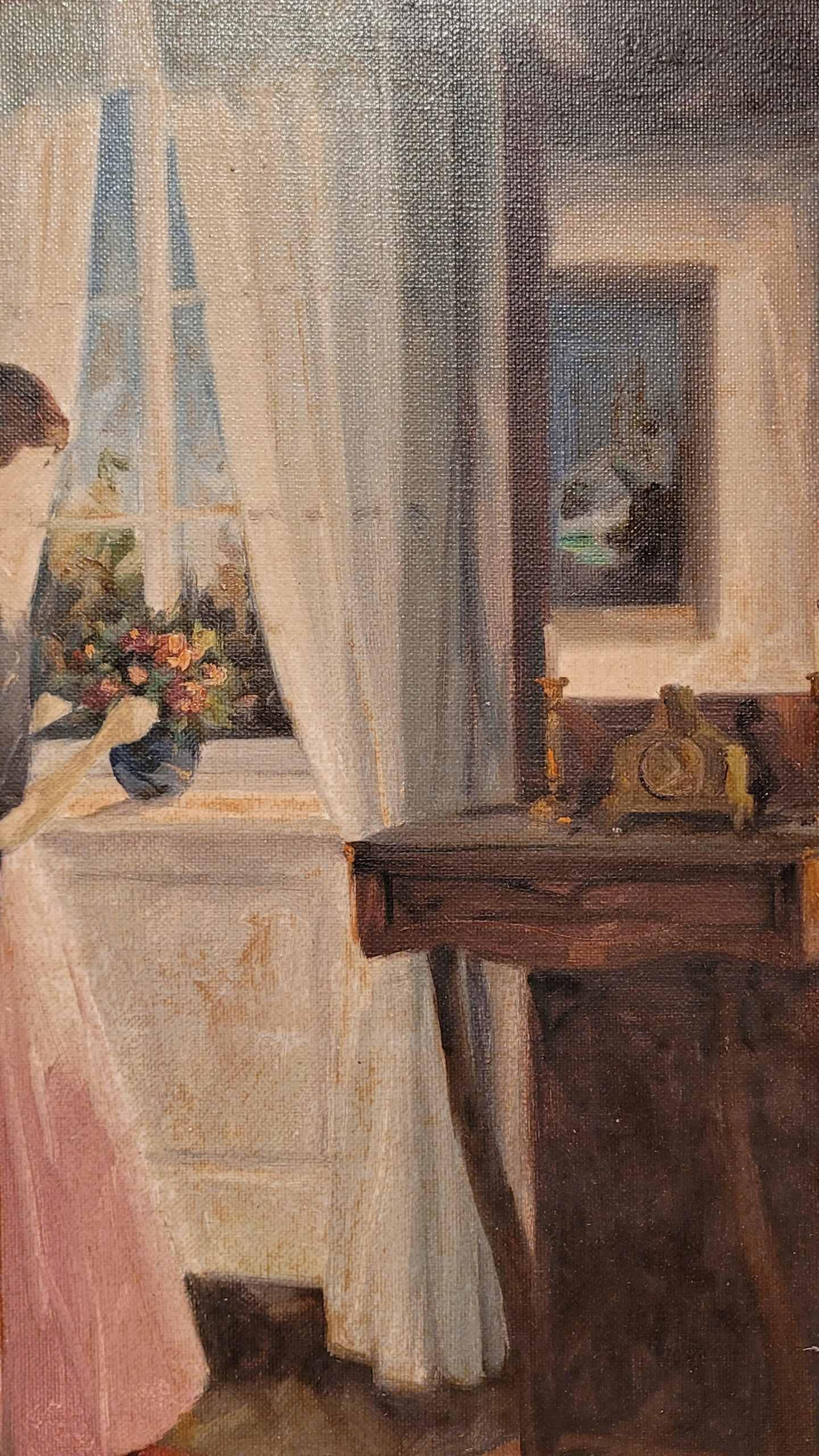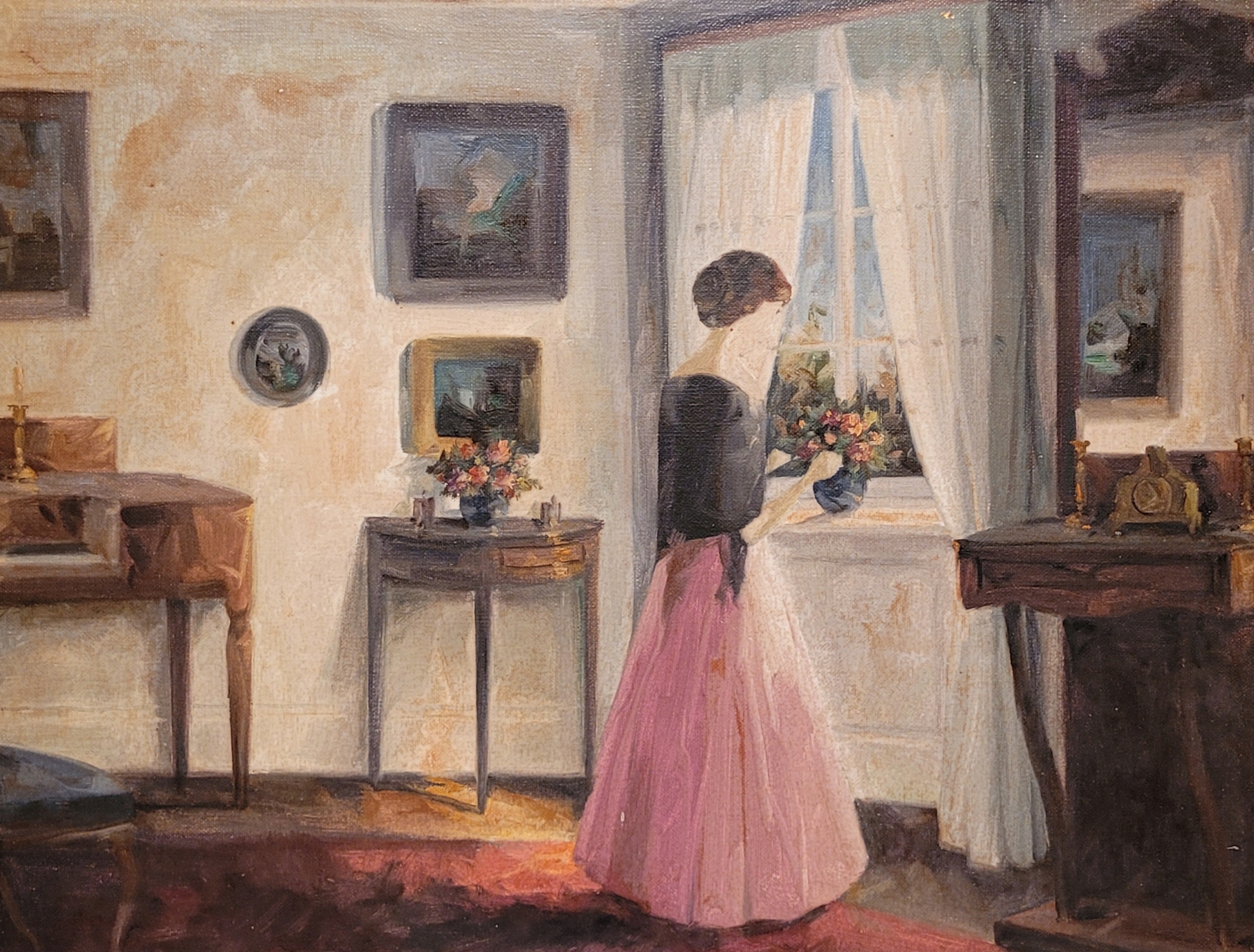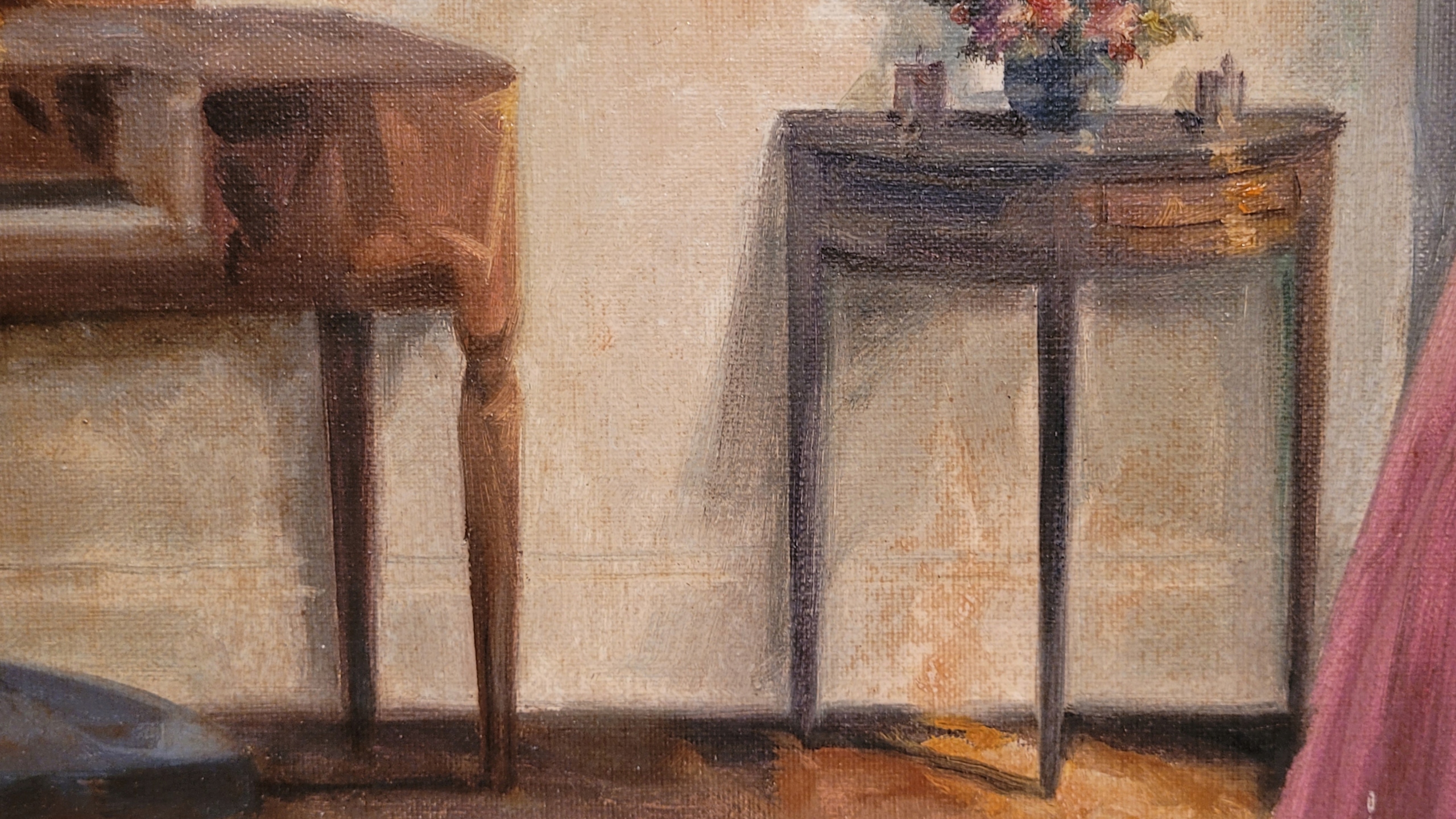 Бенте Берг (1931-) - «Женщина в салоне», красивая нефтяная картина.