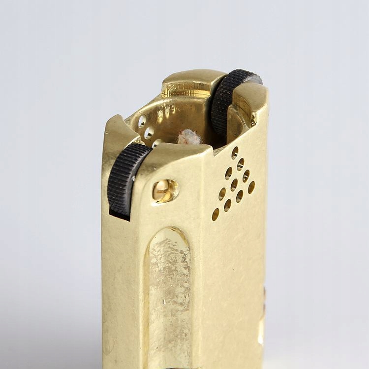 Зажигалка с классическим бензиновым контейнером, усиленным фитилью и зажиганием на двух камнях, что на практике делает всю структуру надежной. Кусок металла (первоначально они были изготовлены из алюминия, реплика изготовлена из стали, покрытой покрытием, плюс латунные крышки). Верхние и нижние шапки герметизированы, благодаря тому, что бензин не испаряется, а зажигалка поддерживает эффективность в течение долгих недель после заполнения >