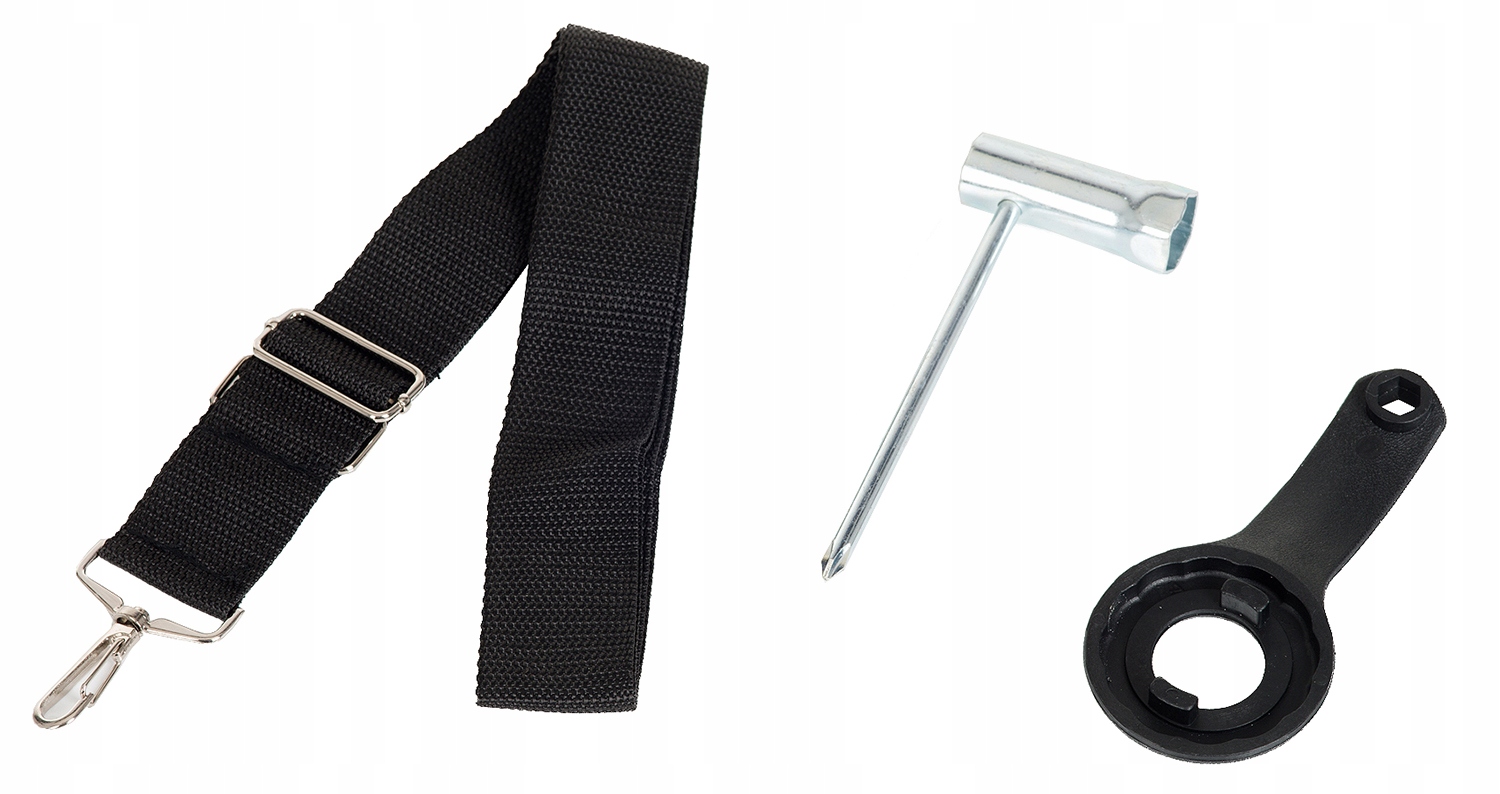 - В комплект входят:поддерживающая обвязка, режущая головка с леской, емкость для приготовления топливной смеси, инструменты для сборки и эксплуатации косы