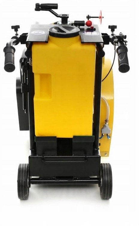 Пила для бетона и асфальта, предназначенная для резки по прямой. Благодаря использованию дополнительного «пульта» в виде красного диска оператор заранее знает и может корректировать линию реза.
