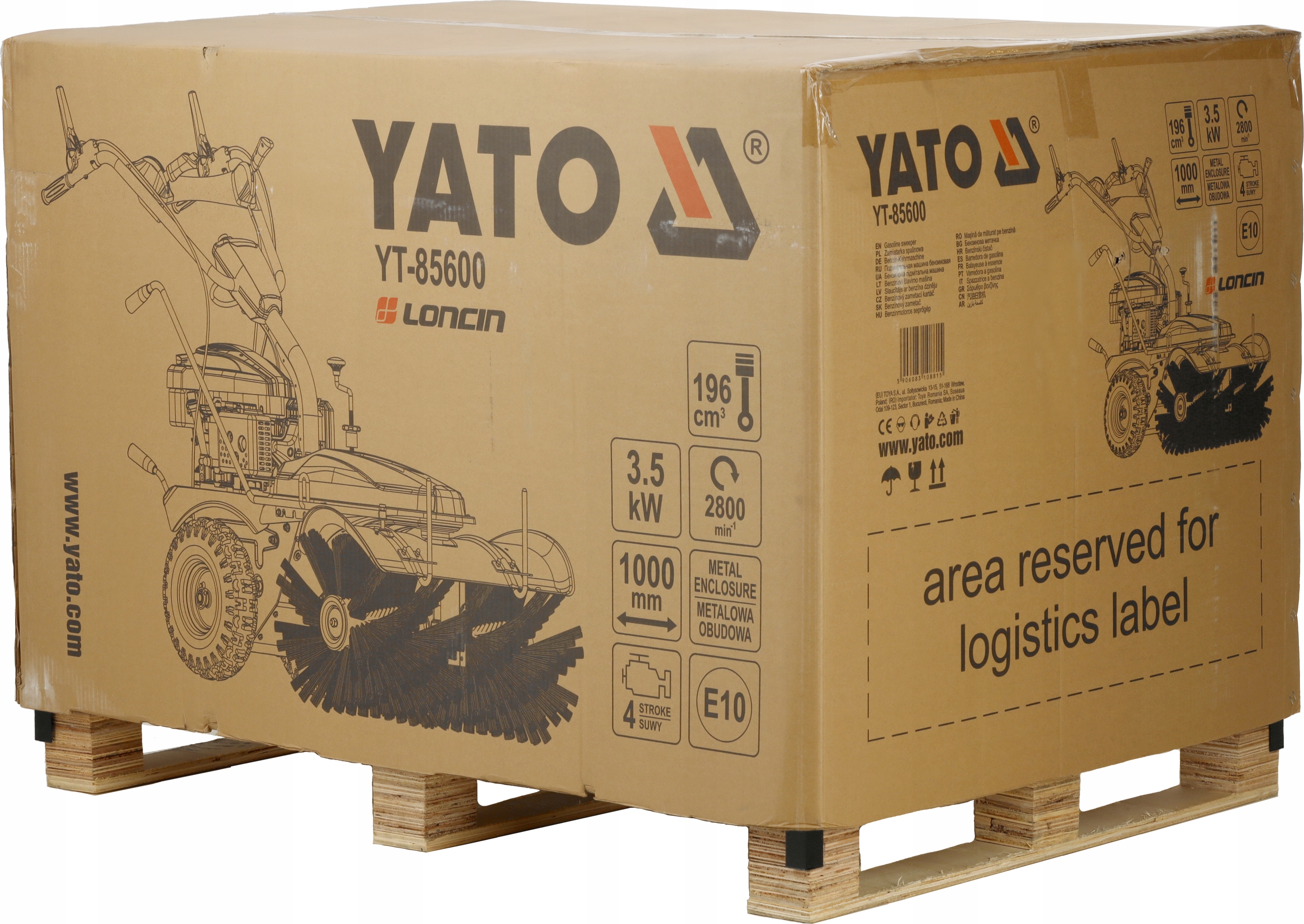 Бензиновая подметальная машина Yato, оснащенная двигателем LONCIN объемом 196 см³, представляет собой устройство, идеально подходящее для уборочных работ на твердых поверхностях.