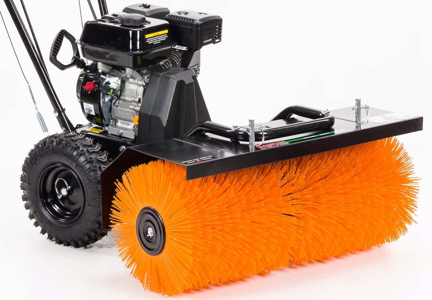 Большие колеса с высоким протектором обеспечивают отличное сцепление с дорогой в любых условиях, а прочная и широкая щетка позволяет быстро и эффективное подметание подъездов, дорожек и парковок.