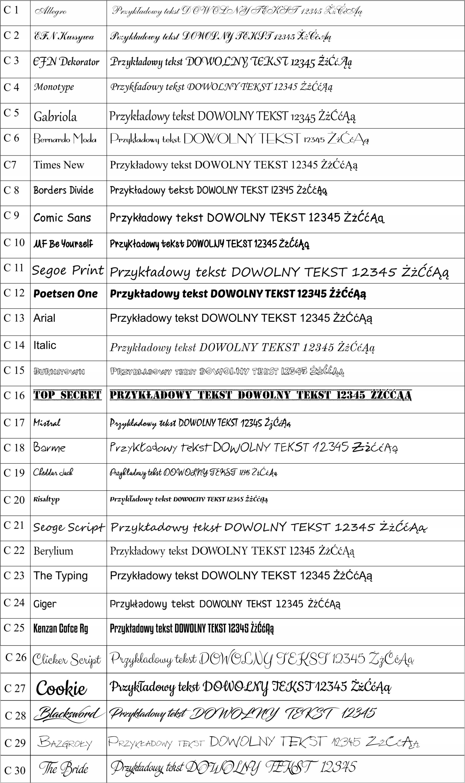 Это влияет на эффект гравировки при выборе каждого шрифта.