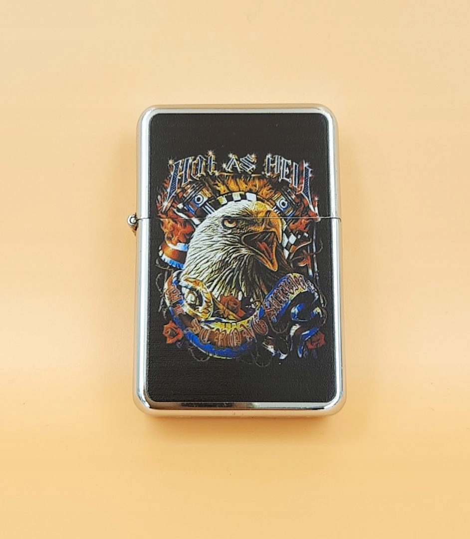 Предложение распространяется на бензиновую зажигалку с изображением орла. Это бензин. Идеально подходит для подарка. Размеры зажигалки составляют 6 см в длину и 4 см в ширину. Зажигалка не заправлена бензином. Для его запуска необходимо заправить специальное топливо для зажигалок.