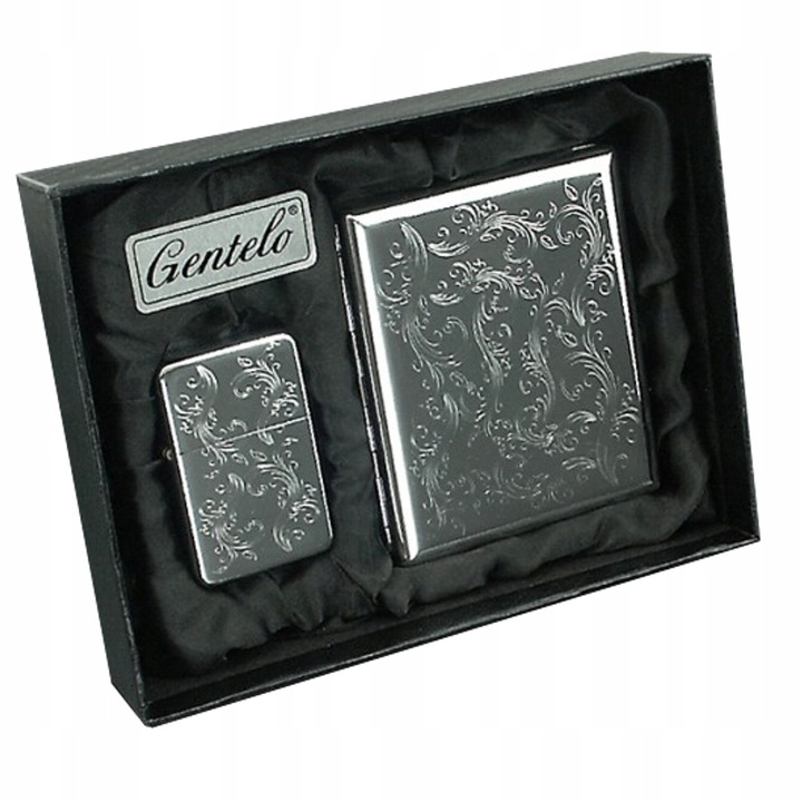 Эксклюзивный набор из бензиновой зажигалки и портсигара, упакованных в стильную упаковку с бархатной подкладкой. Прекрасный подарочный набор на любой случай.