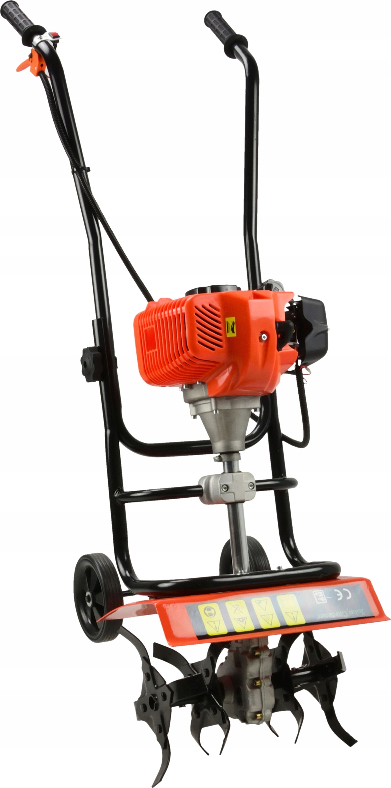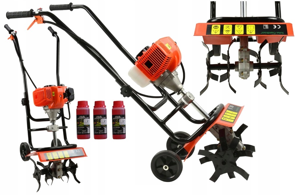 Эффективный двухтактный двигатель объемом 52 см3 генерирует мощность 5,2 л.с. Устройство оснащено набором из 4-х режущих ножей с рабочей шириной 370 мм. Лезвия защищены прочной крышкой.