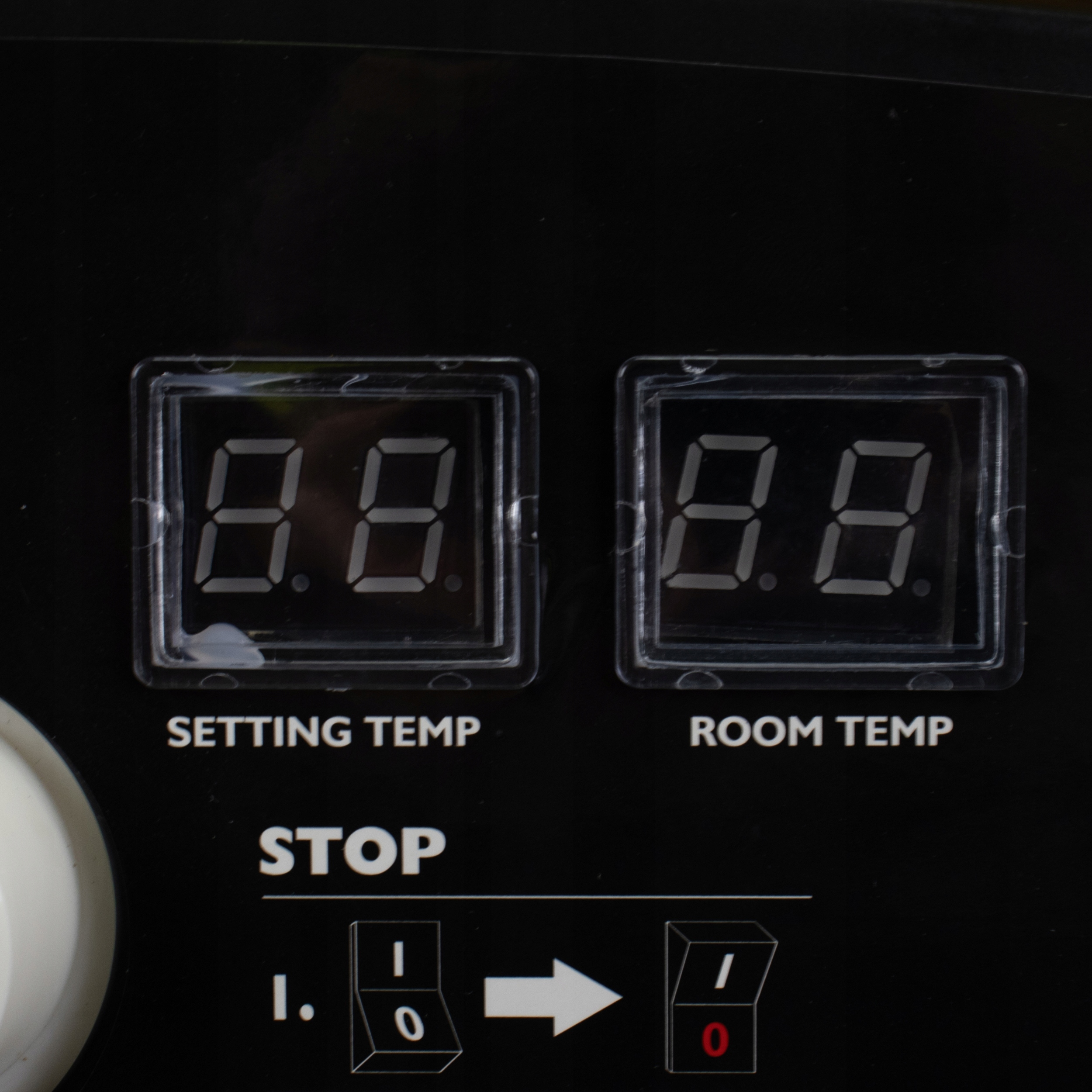 - Интуитивное управление:электронные индикаторы температуры окружающей среды и прибора, термостат ручка для удобной регулировки температуры, выключатель, светодиод питания.