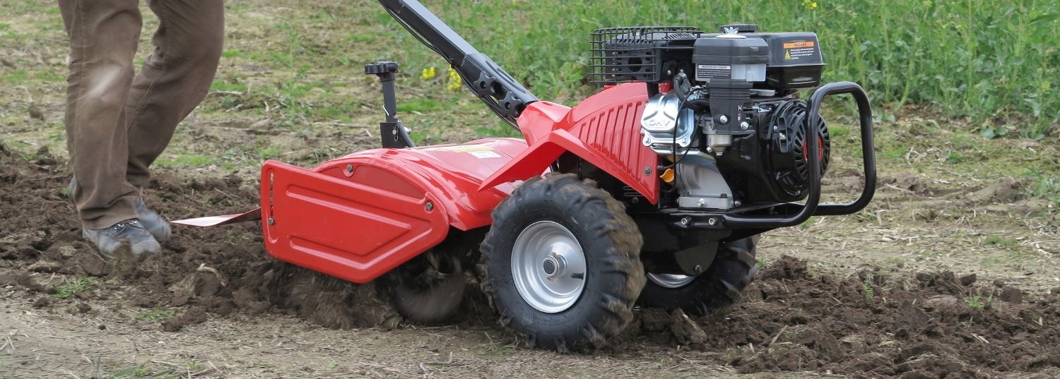 Рукультив имеет 2 больших резиновых ведущих колеса, которые облегчают управление машиной и обеспечивают безопасное вождение, не утомляющее оператора. По сравнению с традиционным культиватором с передними роторами предлагаемая модель отличается гораздо лучшей тягой, отличной амортизацией усилия, передаваемого рабочими ножами. Возможность работы задним ходом исключает затаптывание и облегчает извлечение машины, если она застряла.