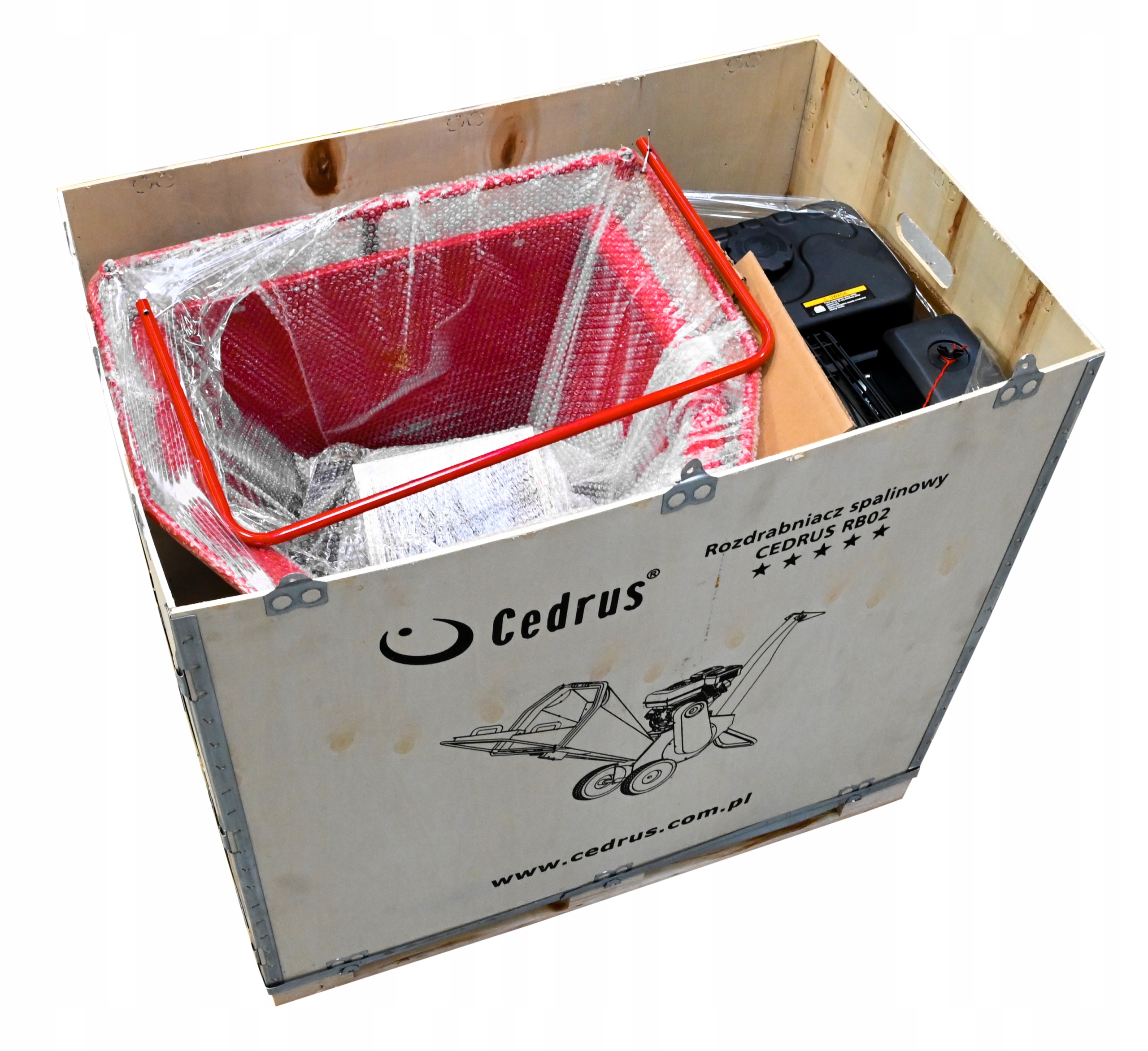 Измельчитель горения Cedrus RB02 – идеальное устройство для владельцев частных садов и огородов. Он легко рубит ветки длиной до 10 см. Производительность этой машины колеблется от 3 м3/ч до 5 м3/ч. Гораздо лучшие результаты работы будут достигнуты при измельчении влажного материала. Измельчитель RB02 оснащен экономичным двигателем мощностью 4,8кВт/3600 об/мин с чугунной гильзой и транзисторным зажиганием. Двигатель приводит в движение рабочее устройство, выполненное в виде барабана с двумя рабочими ножами диаметром 150мм, с помощью двух клиновых ремней. Устройство оснащено двумя предохранительными выключателями, регулируемой вытяжной трубой, надувными колесами, удобной ручкой для транспортировки и широким входным отверстием, позволяющим работать даже с сильно разветвленными ветками. Срезанный материал можно компостировать, присыпать клумбы с деревьями или кустарниками, а после высыхания использовать в качестве топлива.