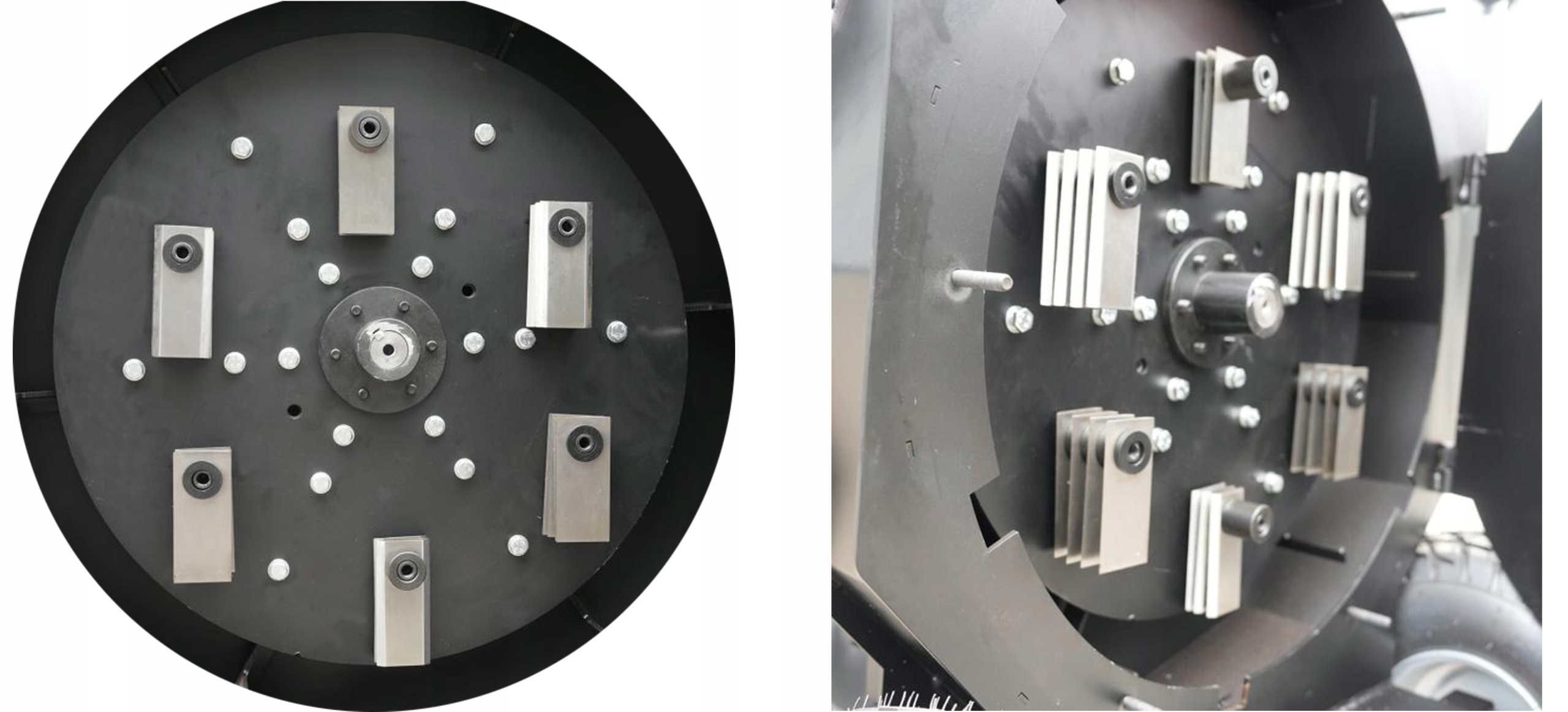 - На втором этапе 22 заостренных битера, расположенные за диском, разбивают материал на мелкую фракцию. Правильно измельченный материал проходит через сито, а затем выбрасывается лопатами-сборщиками.