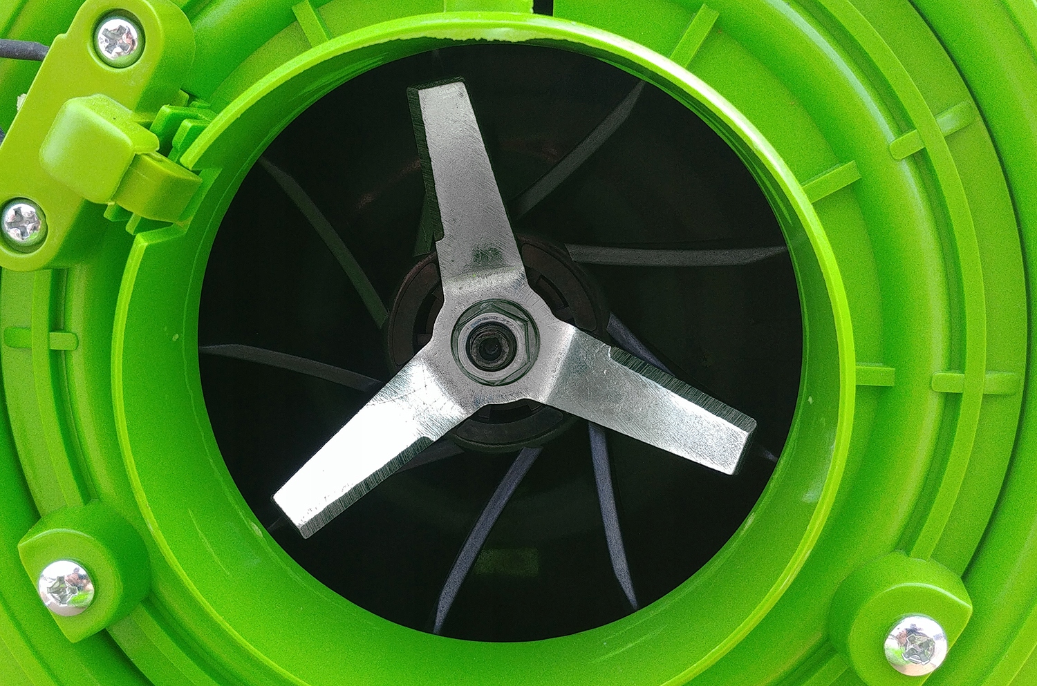 ✅ После всасывания пылесосом листья, трава и другой зеленый мусор измельчаются измельчителем.