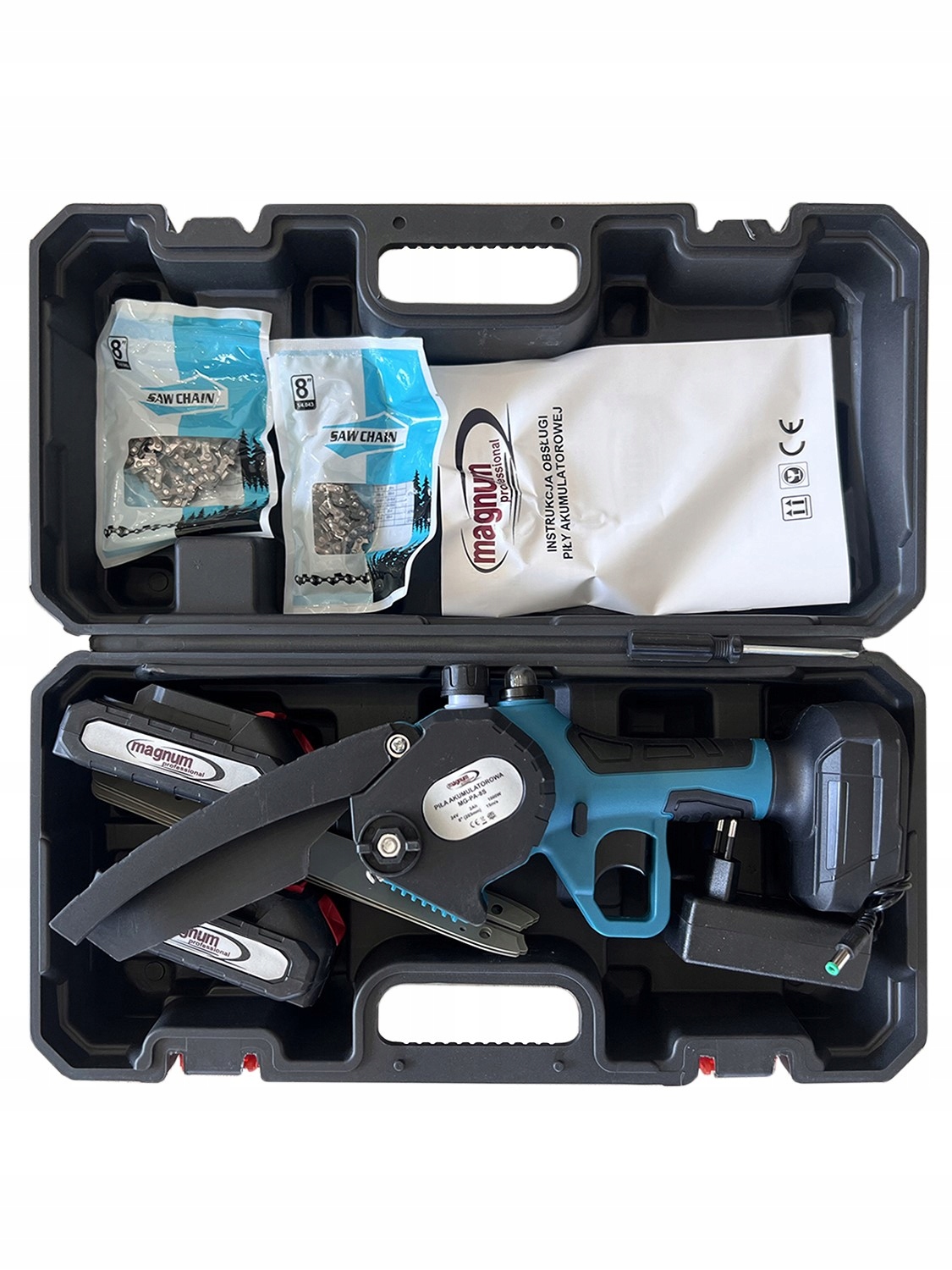 ✔ установлен с 2 8 "Руководствами | 2 цепями | 2 батареи | Зарядное устройство и чемодан | Смазка | Смазка