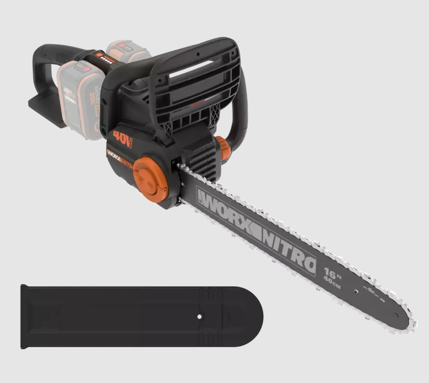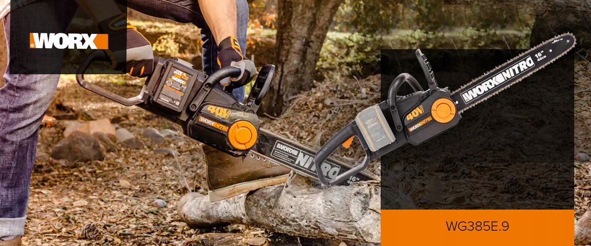 Worx WG385E Nitro, оснащенный бесщеточным двигателем на 40 В, перемещает цепь со скоростью 18 м/с. С дополнительной опцией автоматического натяжения цепи и автоматической смазки.