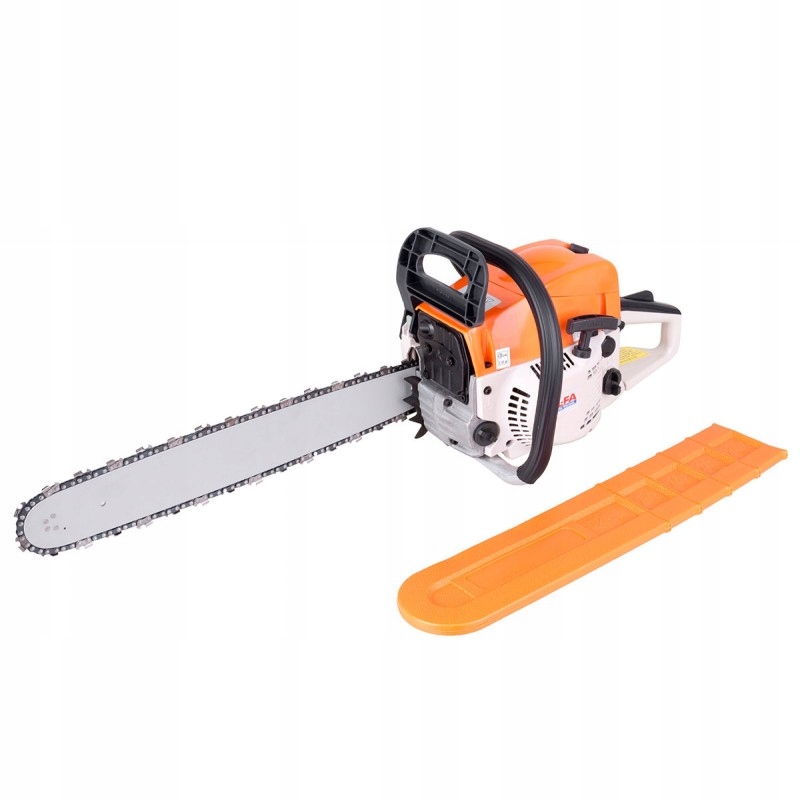 Корпус пилы изготовлен из чрезвычайно прочного и устойчивого к повреждениям пластика. Рукоятка соответствующего профиля имеет удобный рычаг газа и элемент внизу, защищающий руки оператора. Пила оснащена антивибрационной системой и эргономичной верхней ручкой с резиновым покрытием, обеспечивающей надежный захват и комфортную работу.