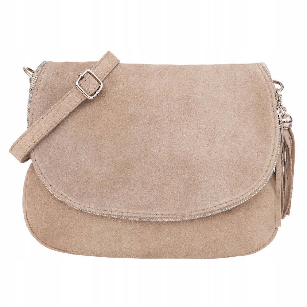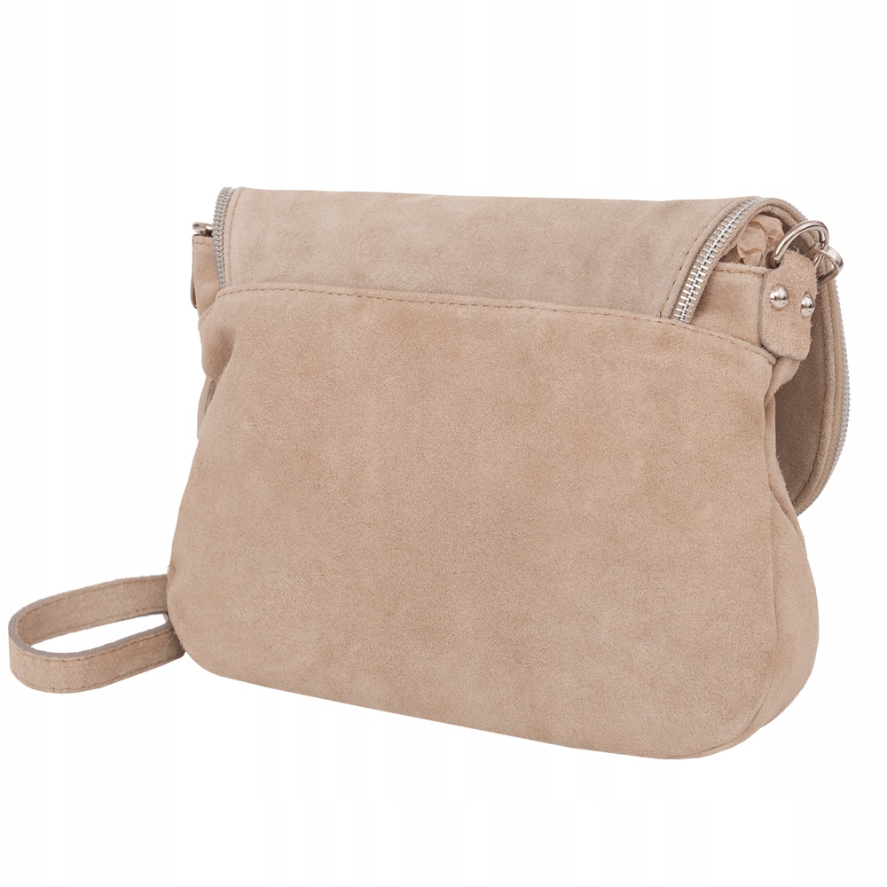 BEŻOWA TOREBKA ZAMSZOWA LISTONOSZKA Z KLAPĄ MIĘKKA SKÓRA ZAMSZ VERA PELLE