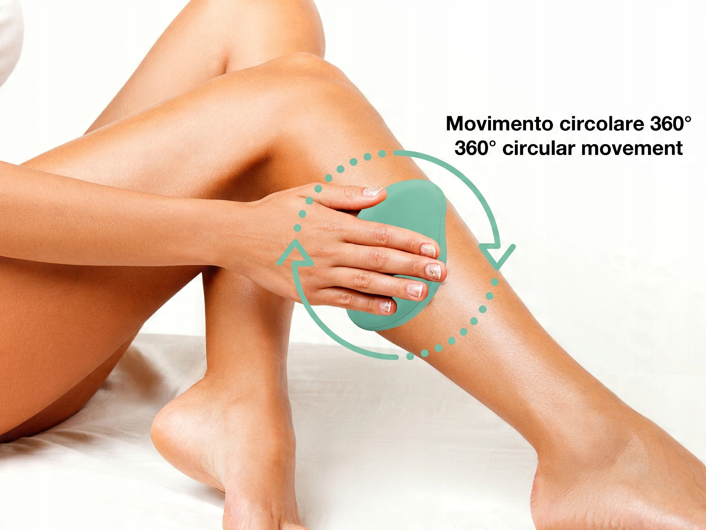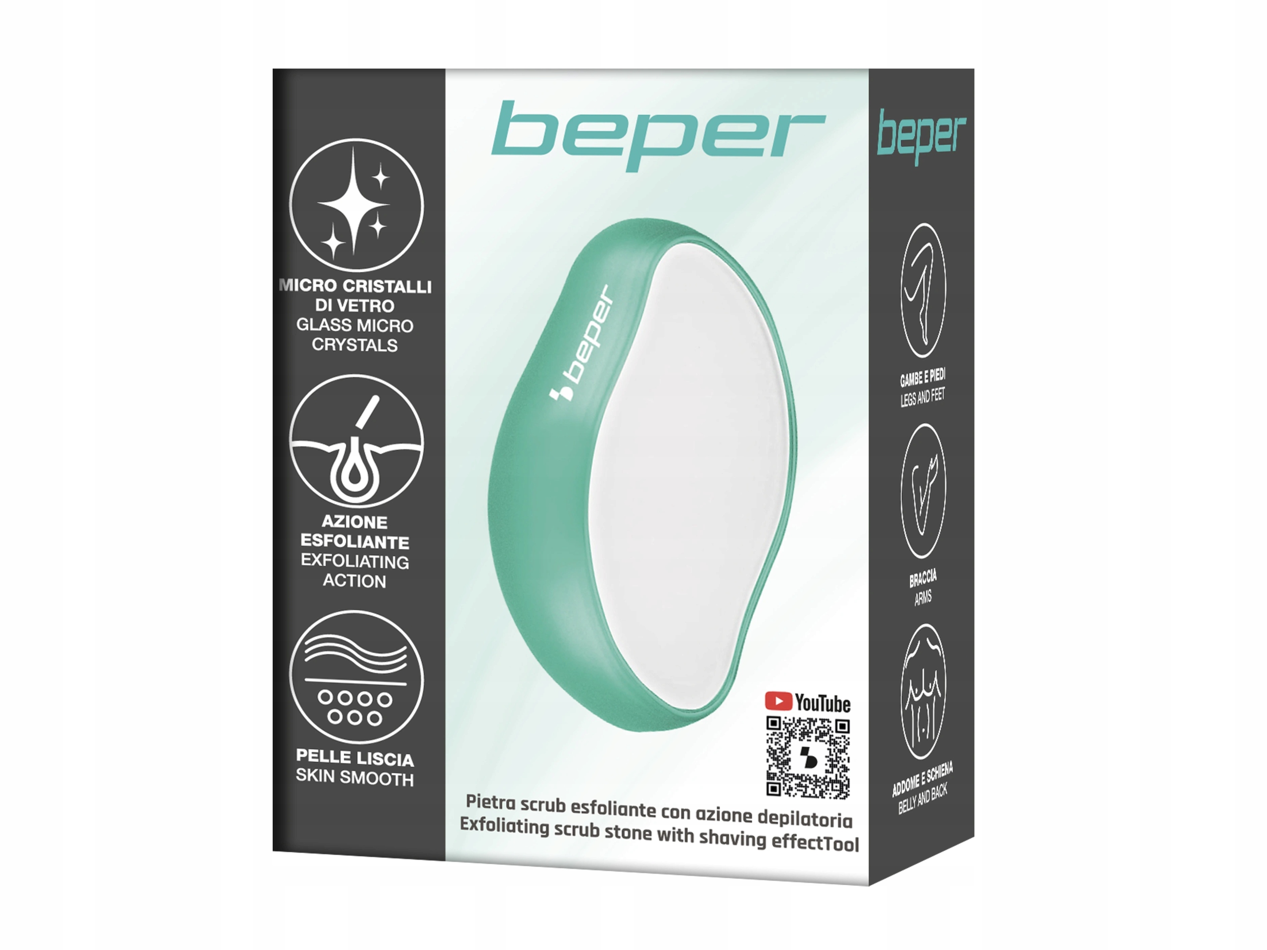 Отшелушивающий пилинг камень с депиляционным эффектом. Благодаря эффекту стеклянных микрокристаллов, это оставляет кожу более мягкой и гладкой. Удаляет мертвые клетки кожи и предотвращает вросшие неприятные волосы. Помогает легко и эффективно удалить существующие волосы