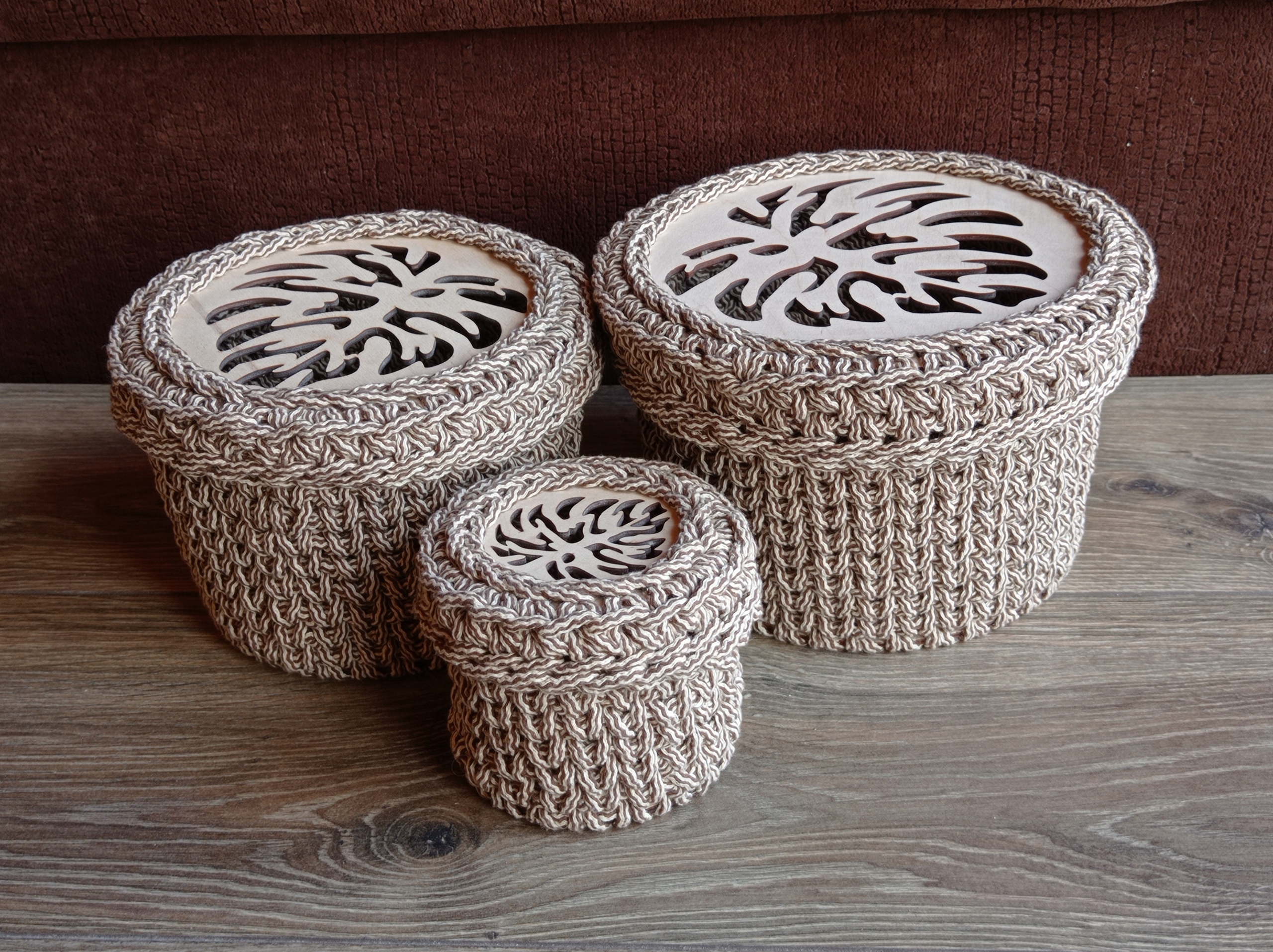 Практическая и твердая основа, изготовленная из фанеры березы, чтобы создать корзину из метода вязания крючком. Идеально подходит для создания декоративных корзин, организаторов или контейнеров для мелких предметов.